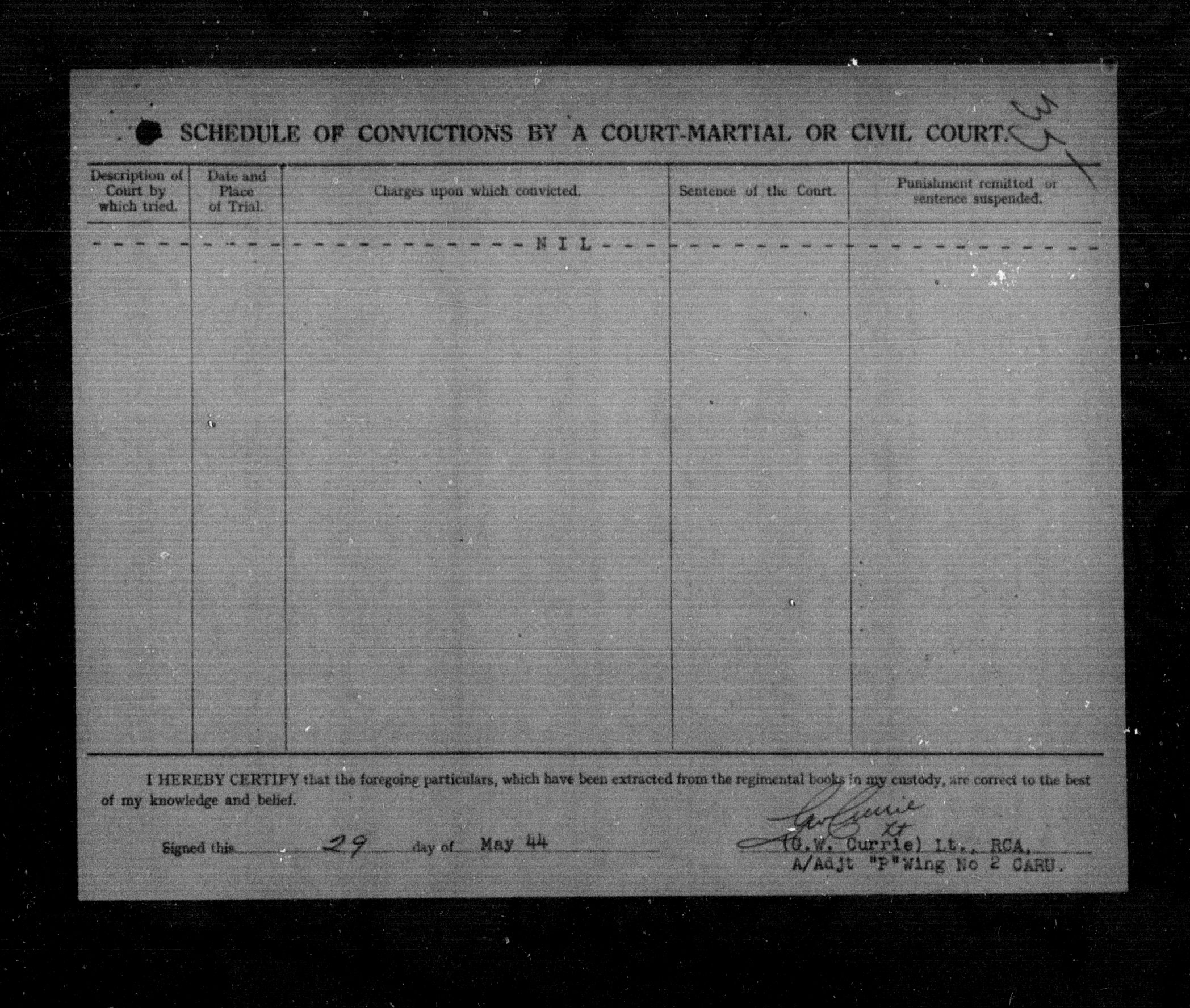 Canadian Army Courts Martial documents (1939-1945) - 15596