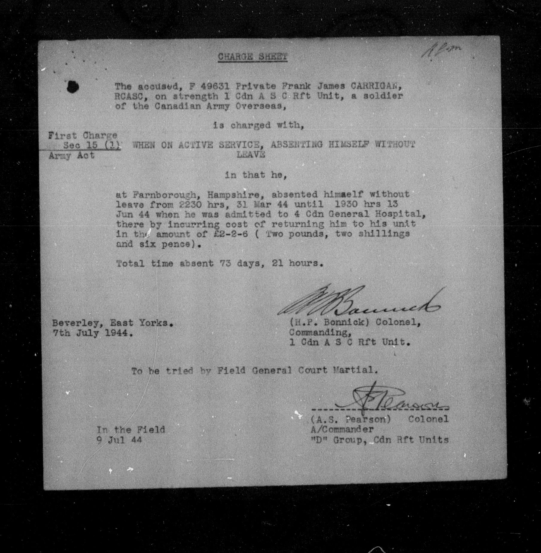 Canadian Army Courts Martial documents (1939-1945) - 15596