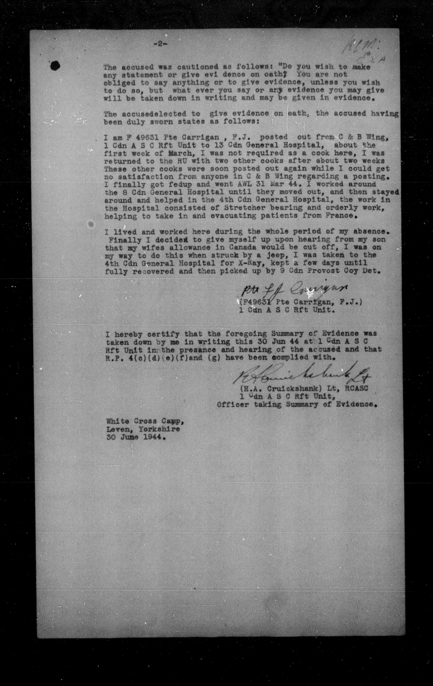 Canadian Army Courts Martial documents (1939-1945) - 15596