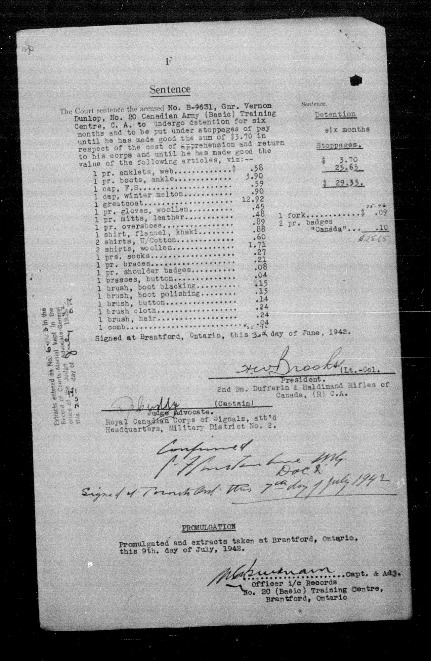 Canadian Army Courts Martial documents (1939-1945) - 15597