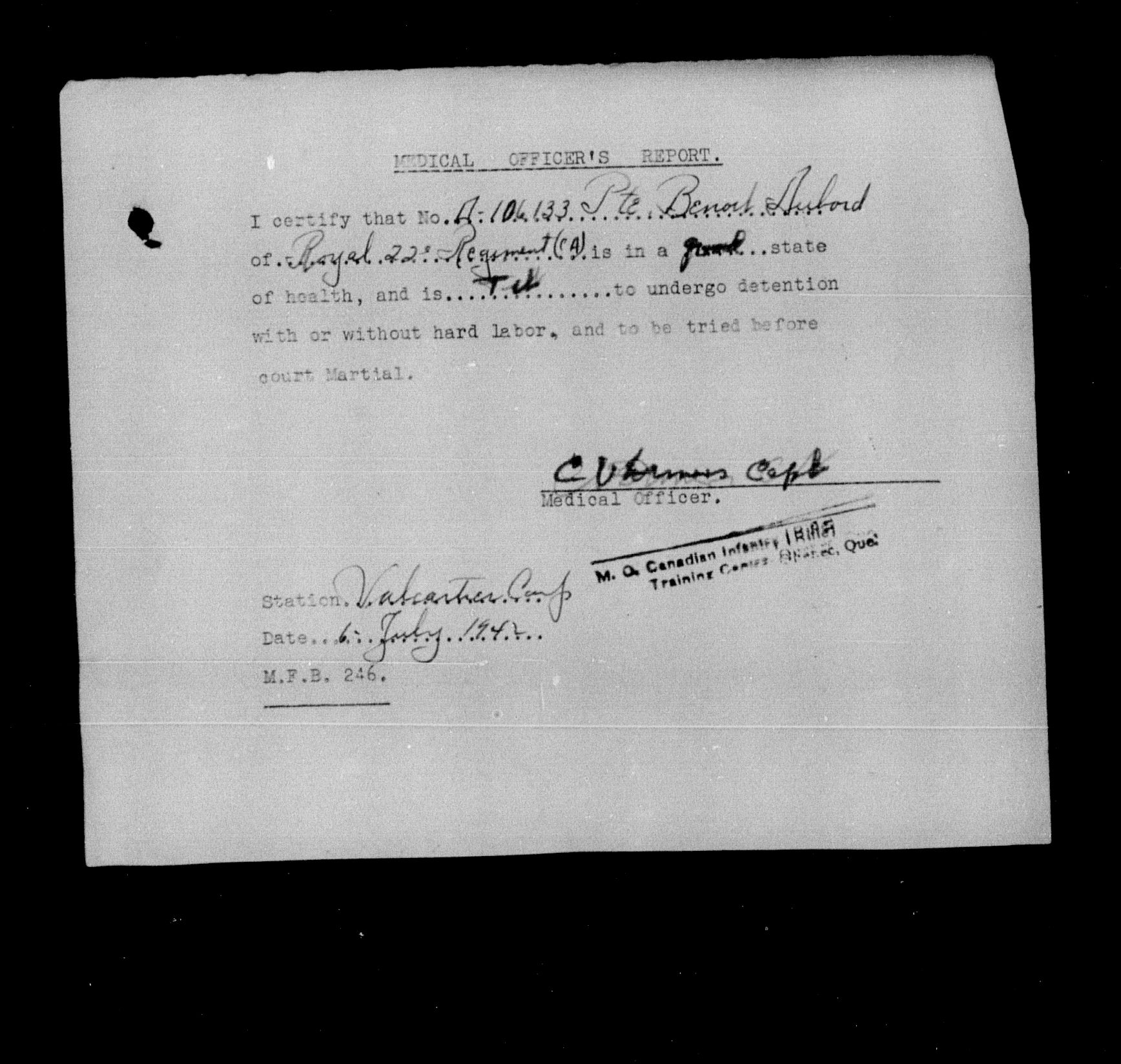 Canadian Army Courts Martial documents (1939-1945) - 15598