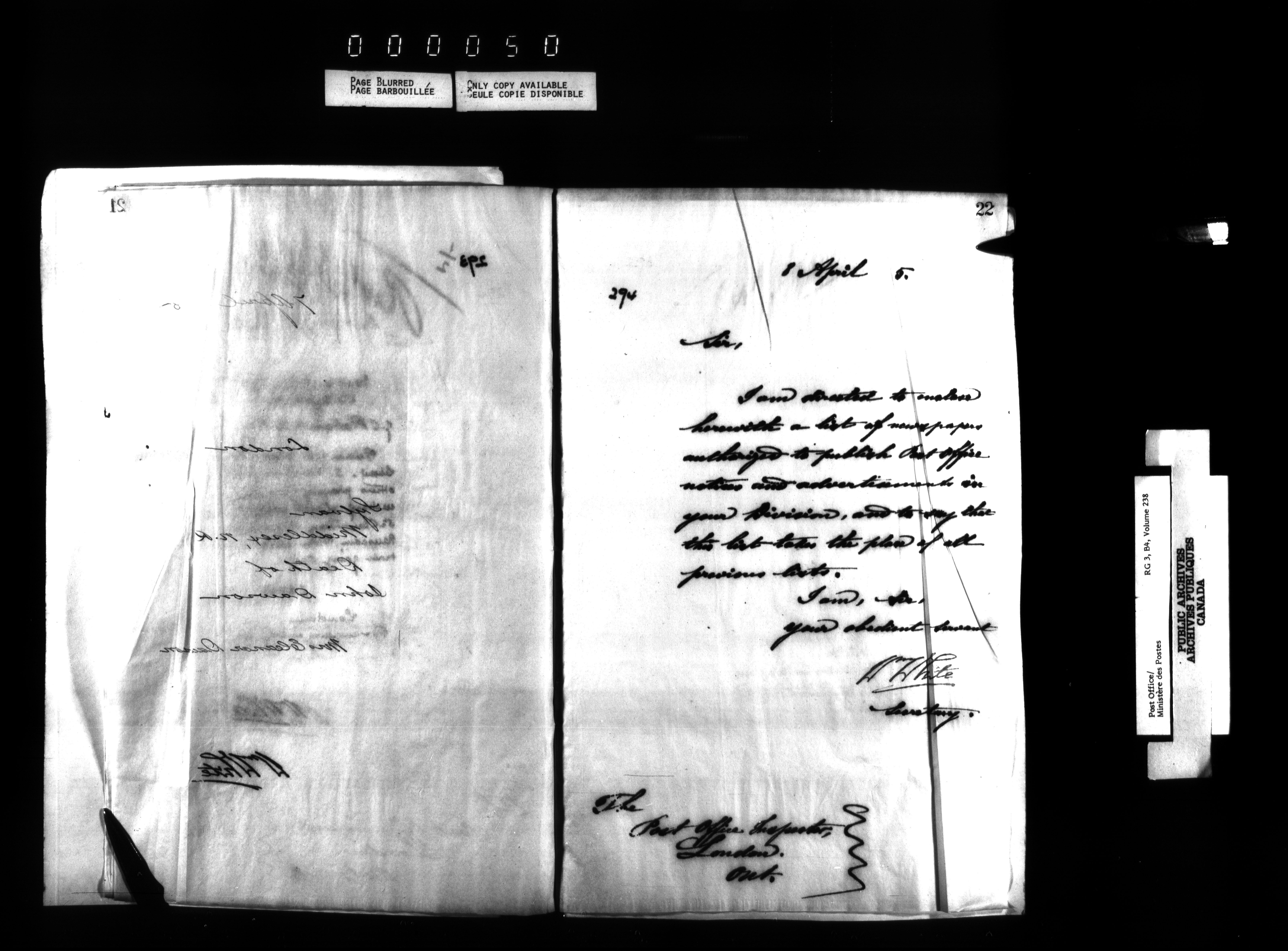 Deputy Postmaster General : correspondence addressed to the Post Office Inspectors, 1851-1902 - 1560
