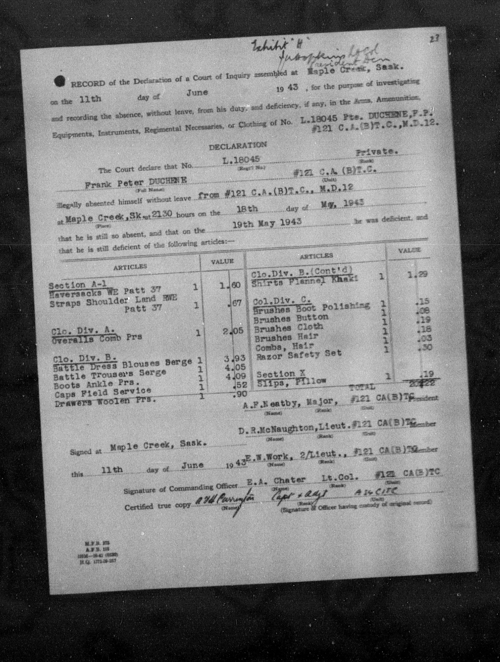 Canadian Army Courts Martial documents (1939-1945) - 15600