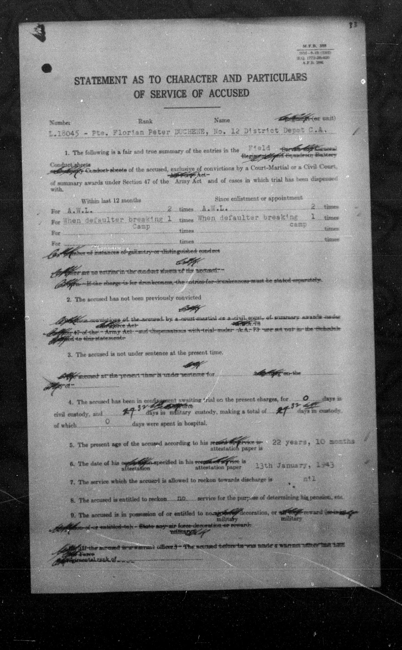 Canadian Army Courts Martial documents (1939-1945) - 15600