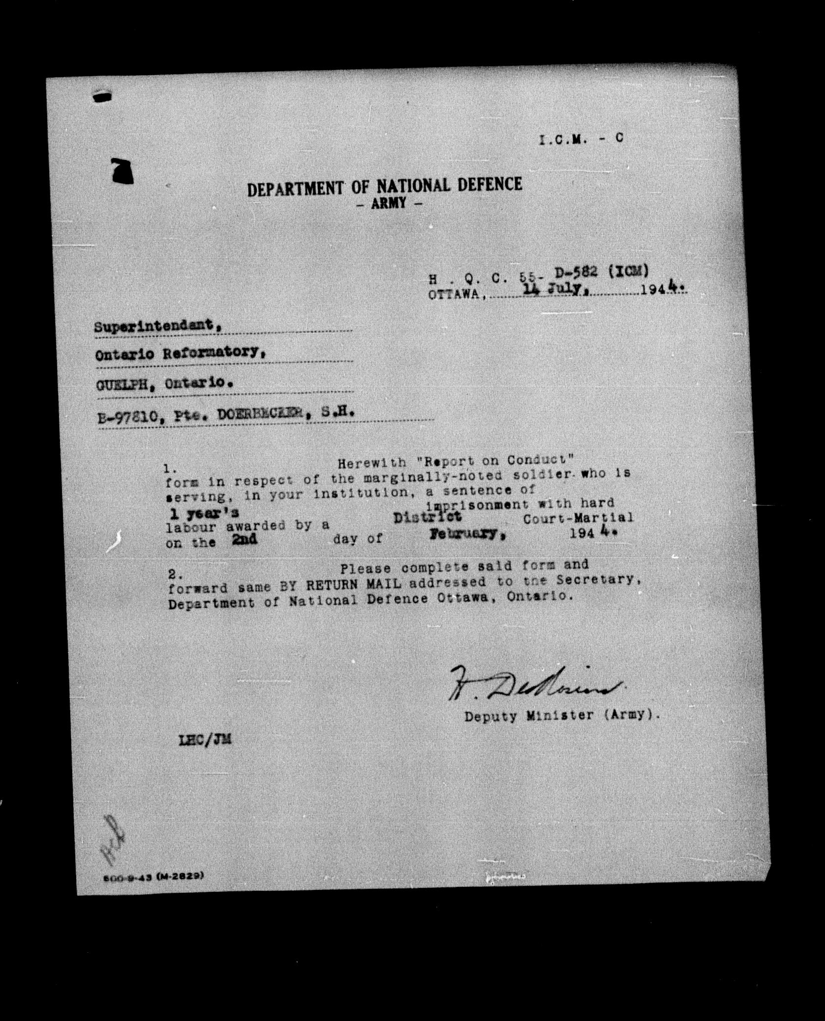Canadian Army Courts Martial documents (1939-1945) - 15601