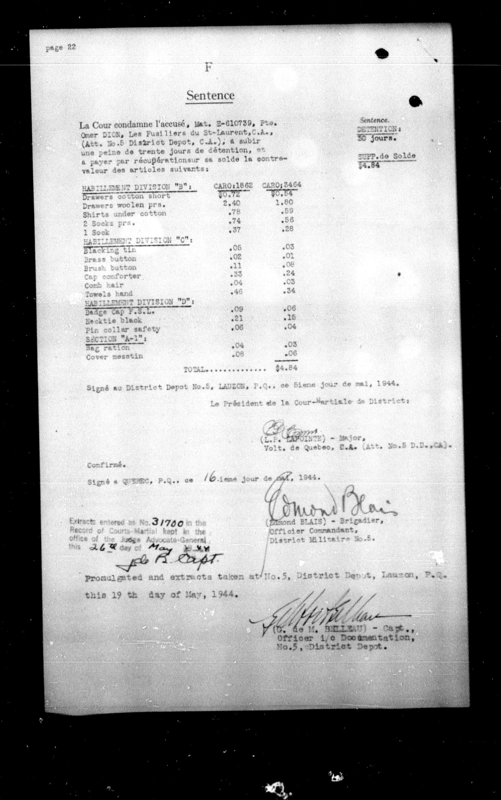Canadian Army Courts Martial documents (1939-1945) - 15602