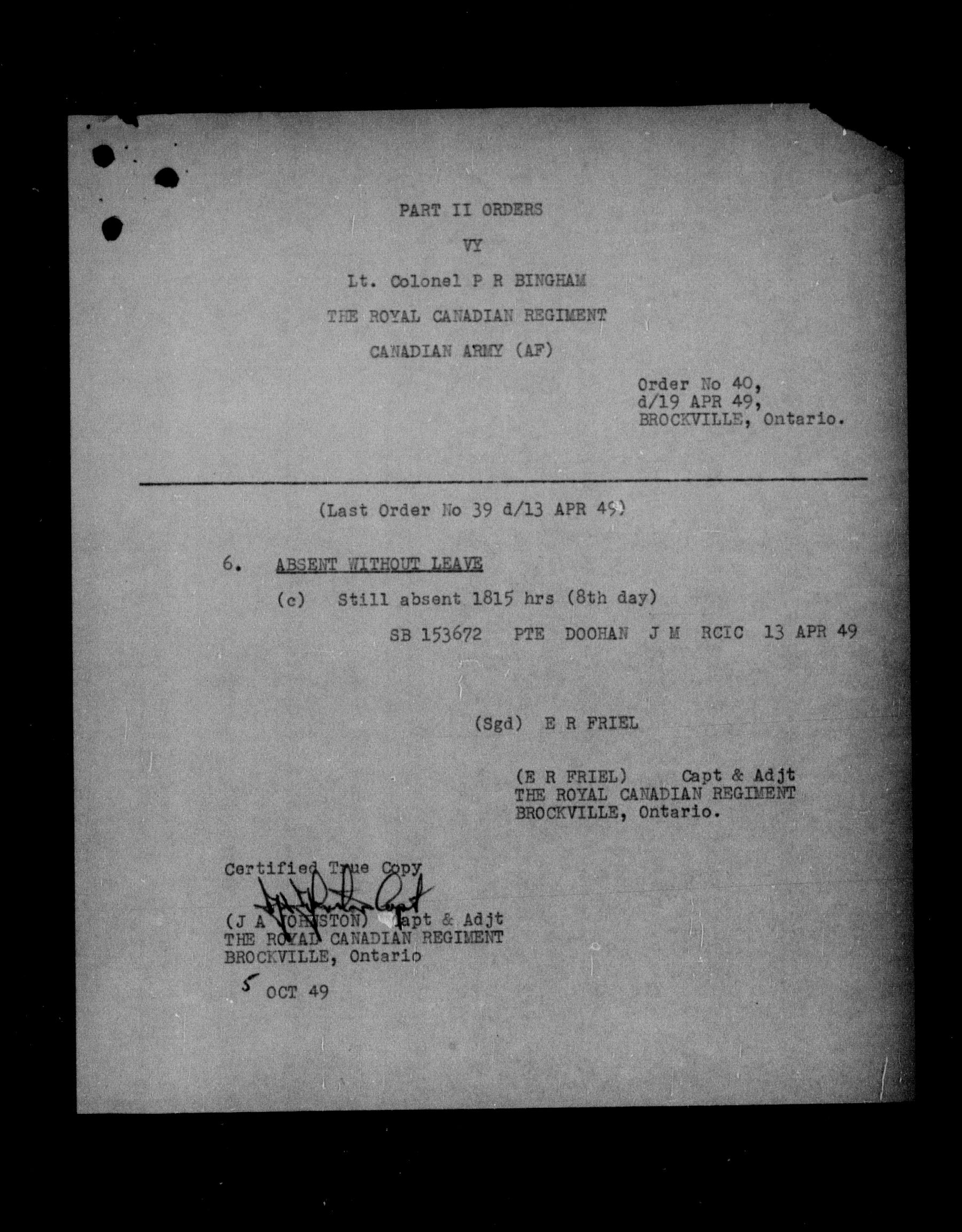 Canadian Army Courts Martial documents (1939-1945) - 15610