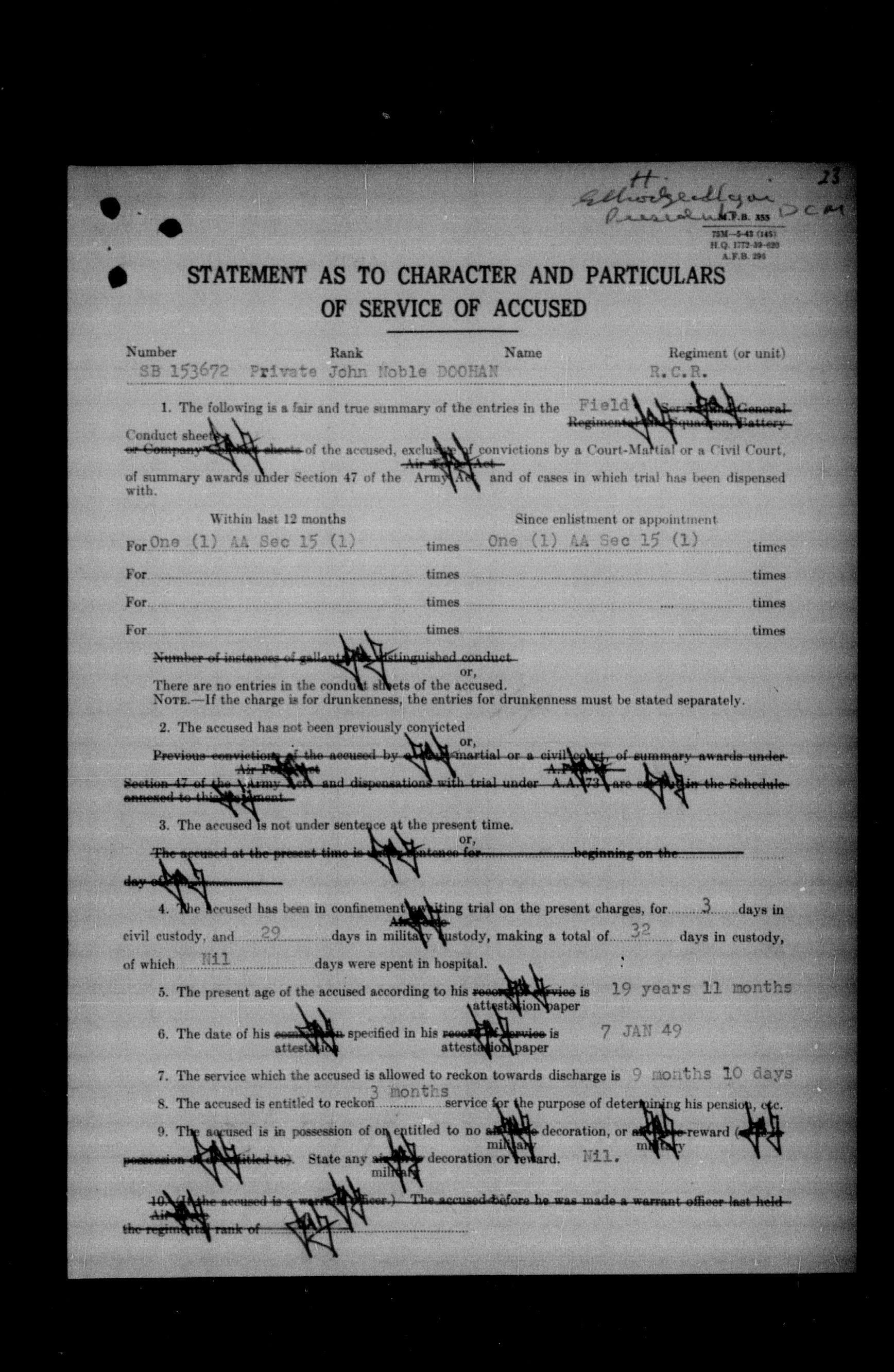 Canadian Army Courts Martial documents (1939-1945) - 15610