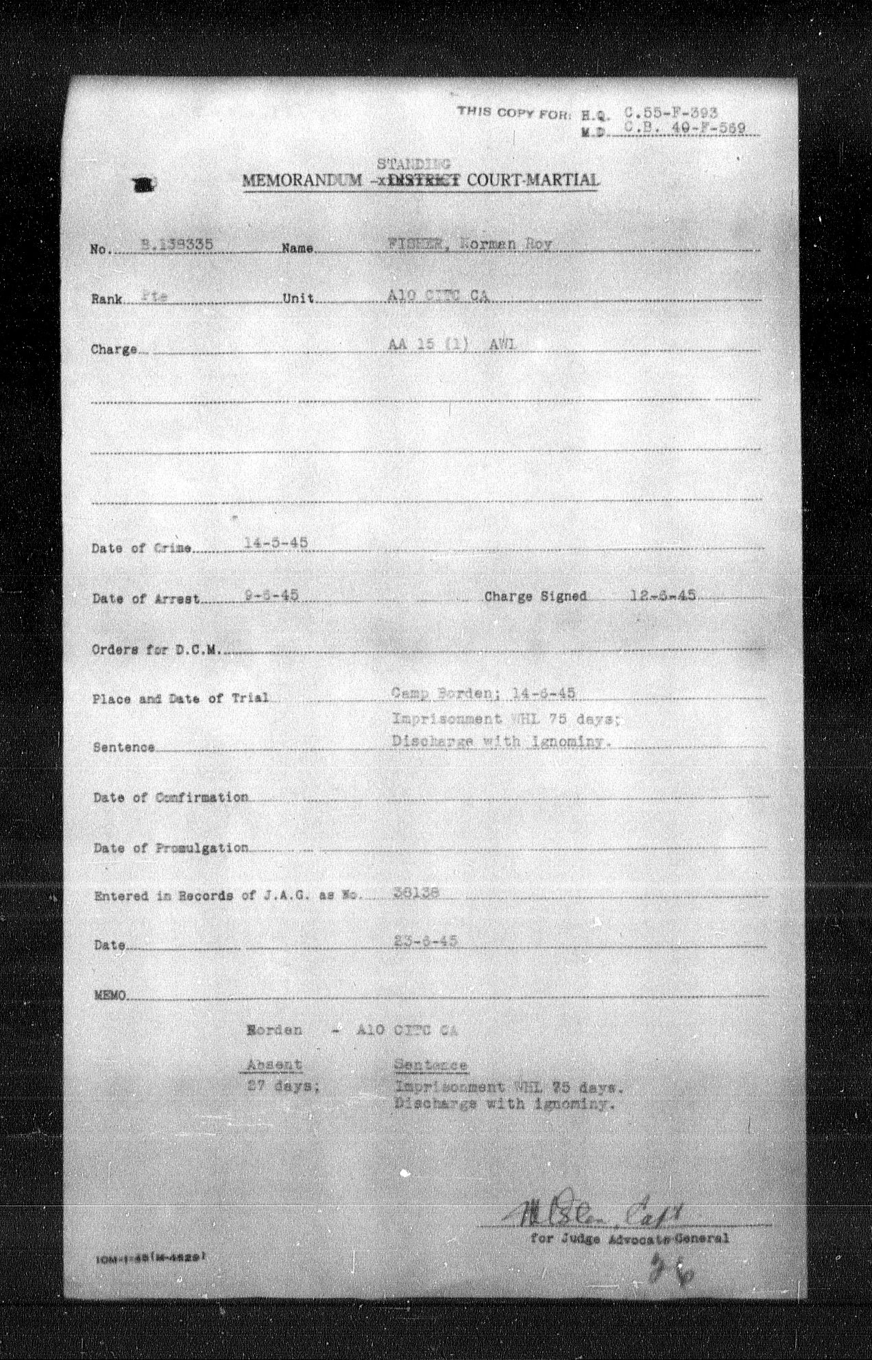 Canadian Army Courts Martial documents (1939-1945) - 15617