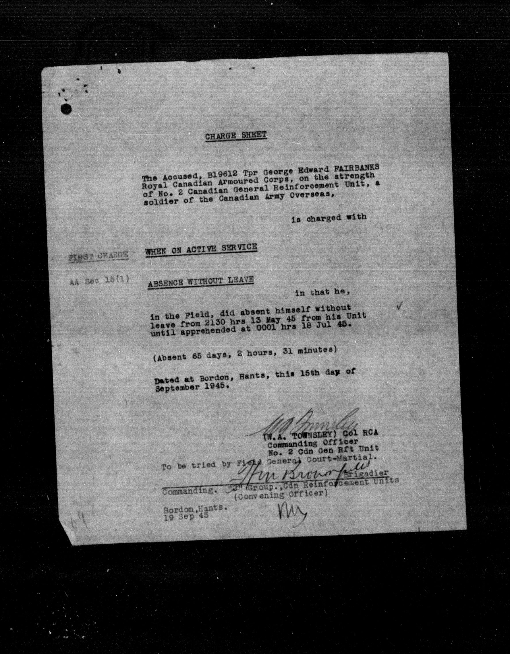 Canadian Army Courts Martial documents (1939-1945) - 15621