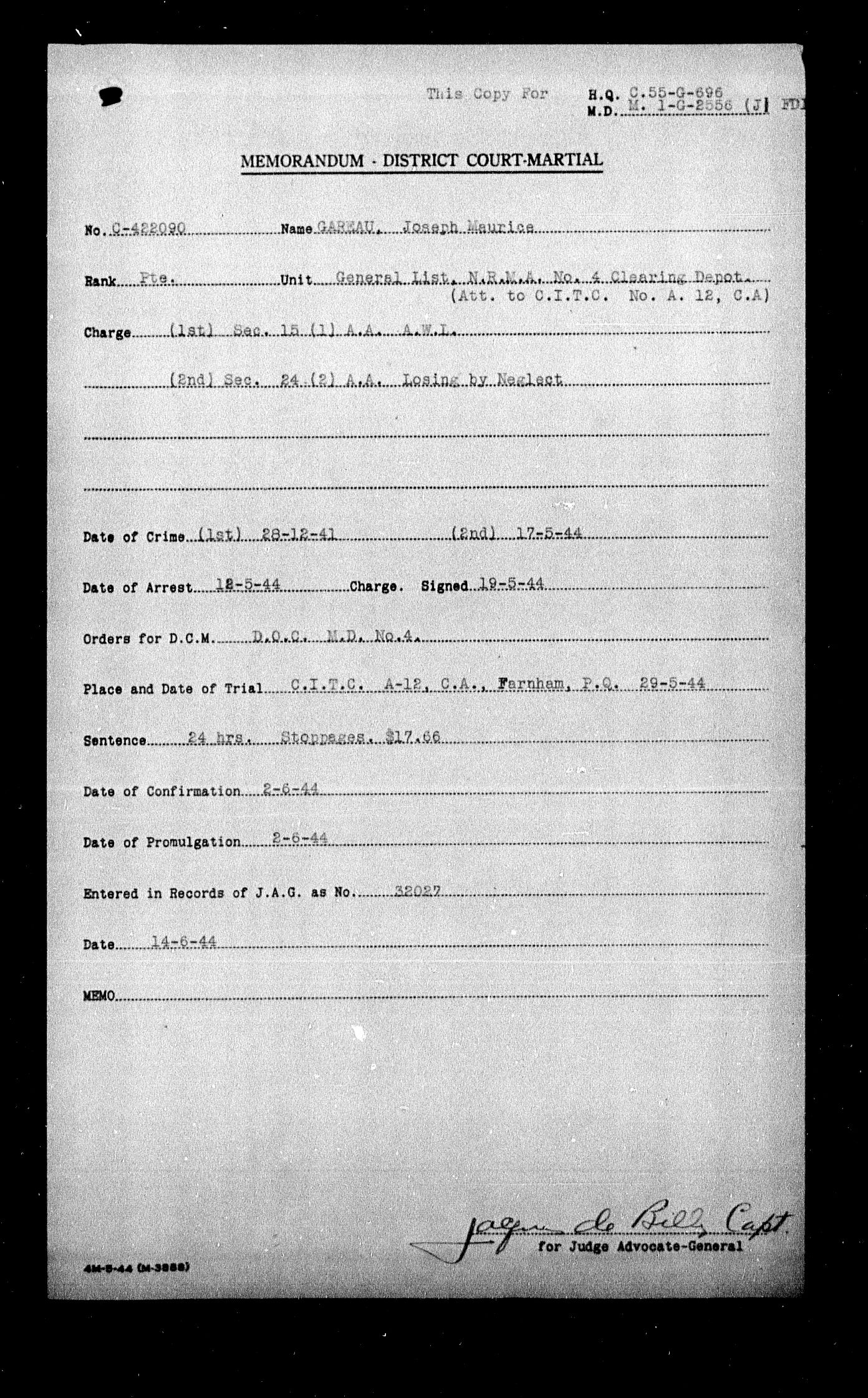 Canadian Army Courts Martial documents (1939-1945) - 15628
