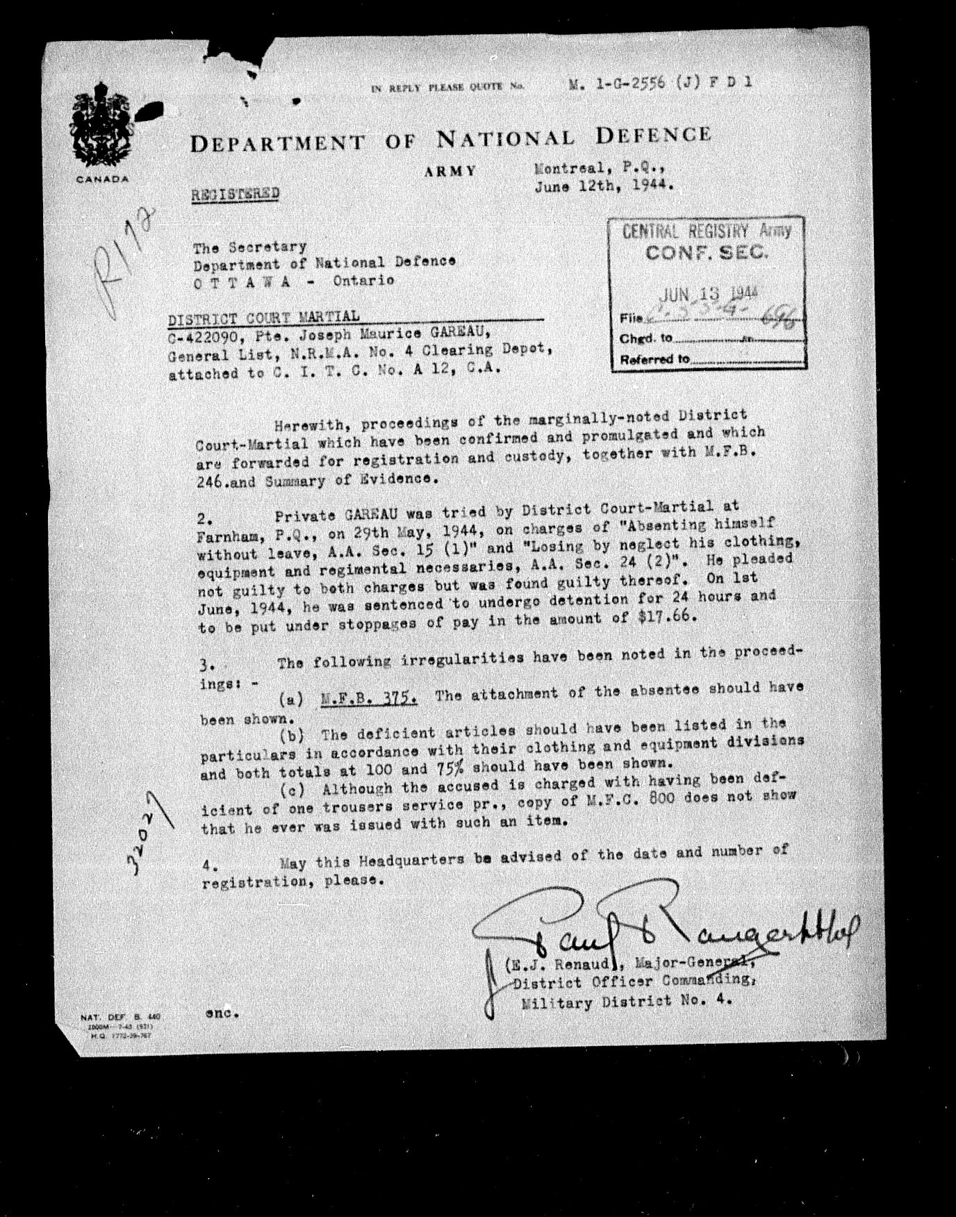 Canadian Army Courts Martial documents (1939-1945) - 15628