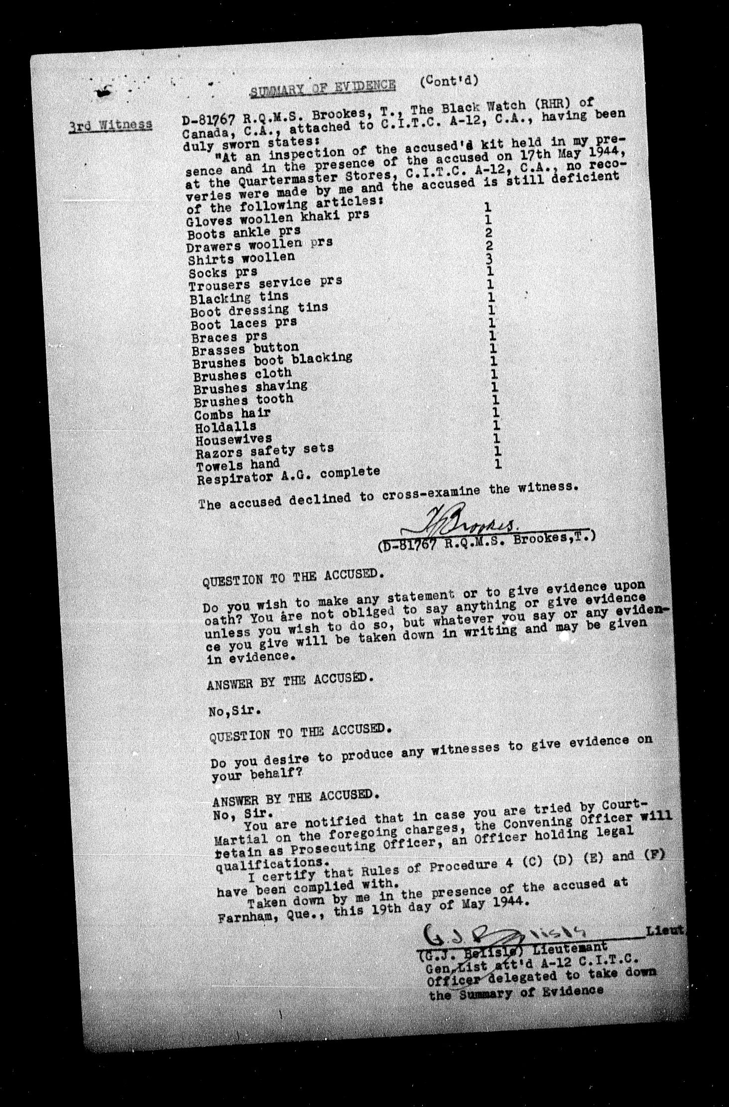 Canadian Army Courts Martial documents (1939-1945) - 15628