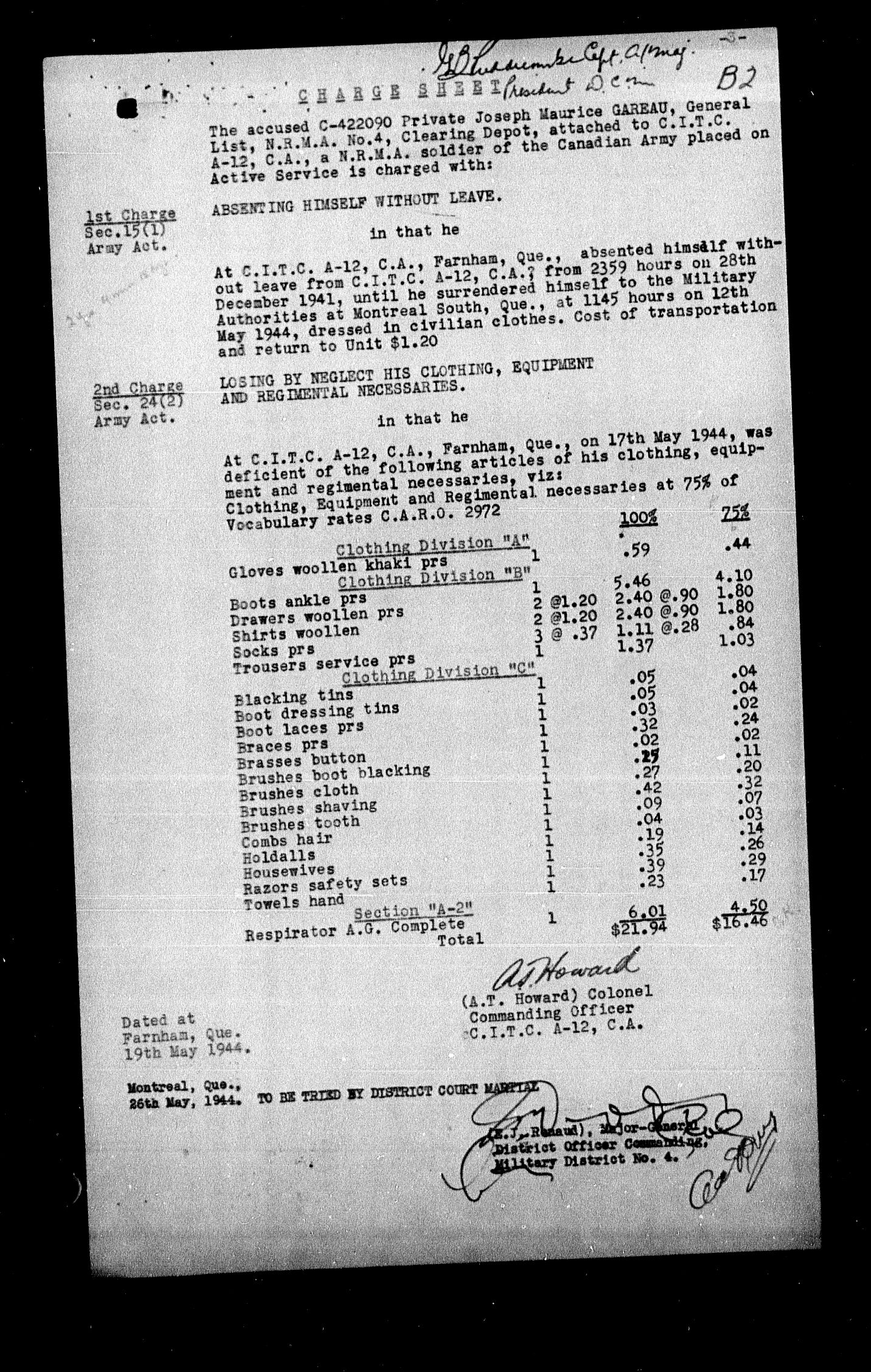 Canadian Army Courts Martial documents (1939-1945) - 15628