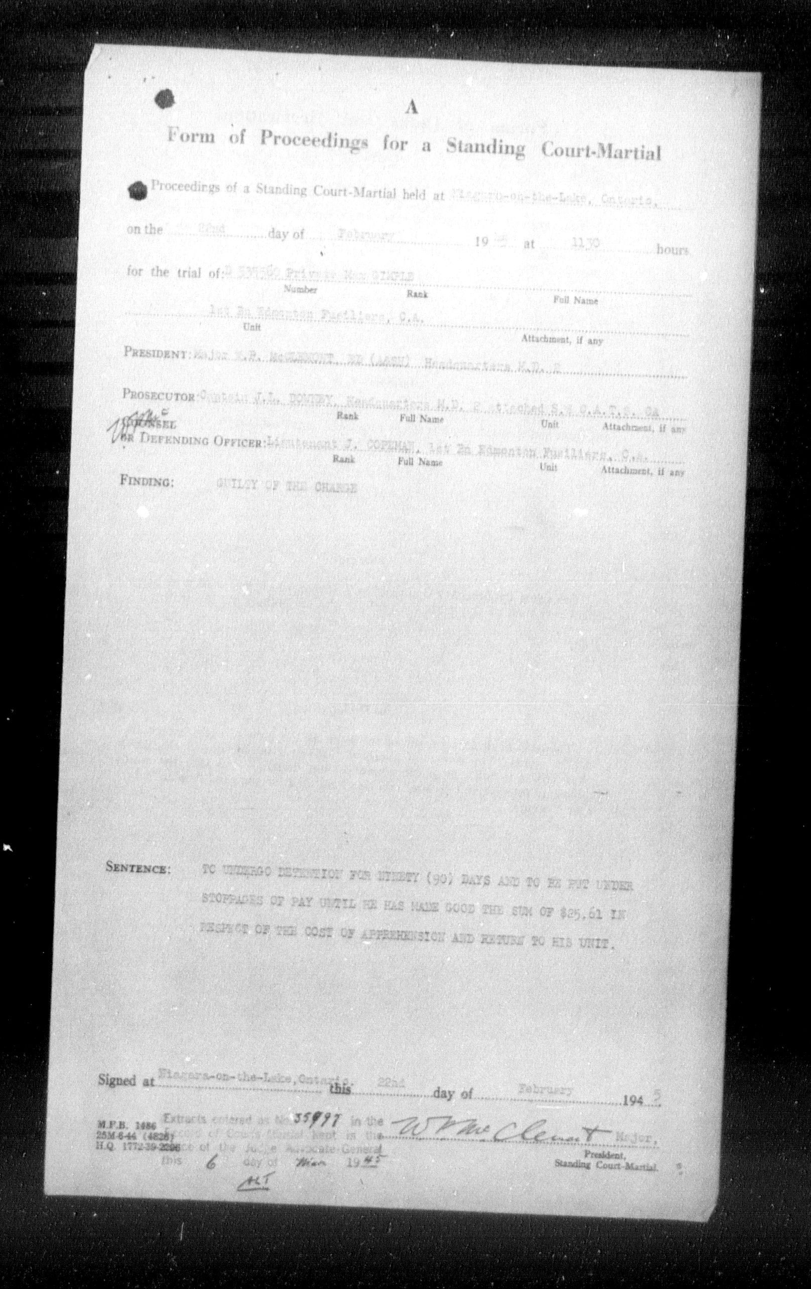 Canadian Army Courts Martial documents (1939-1945) - 15629