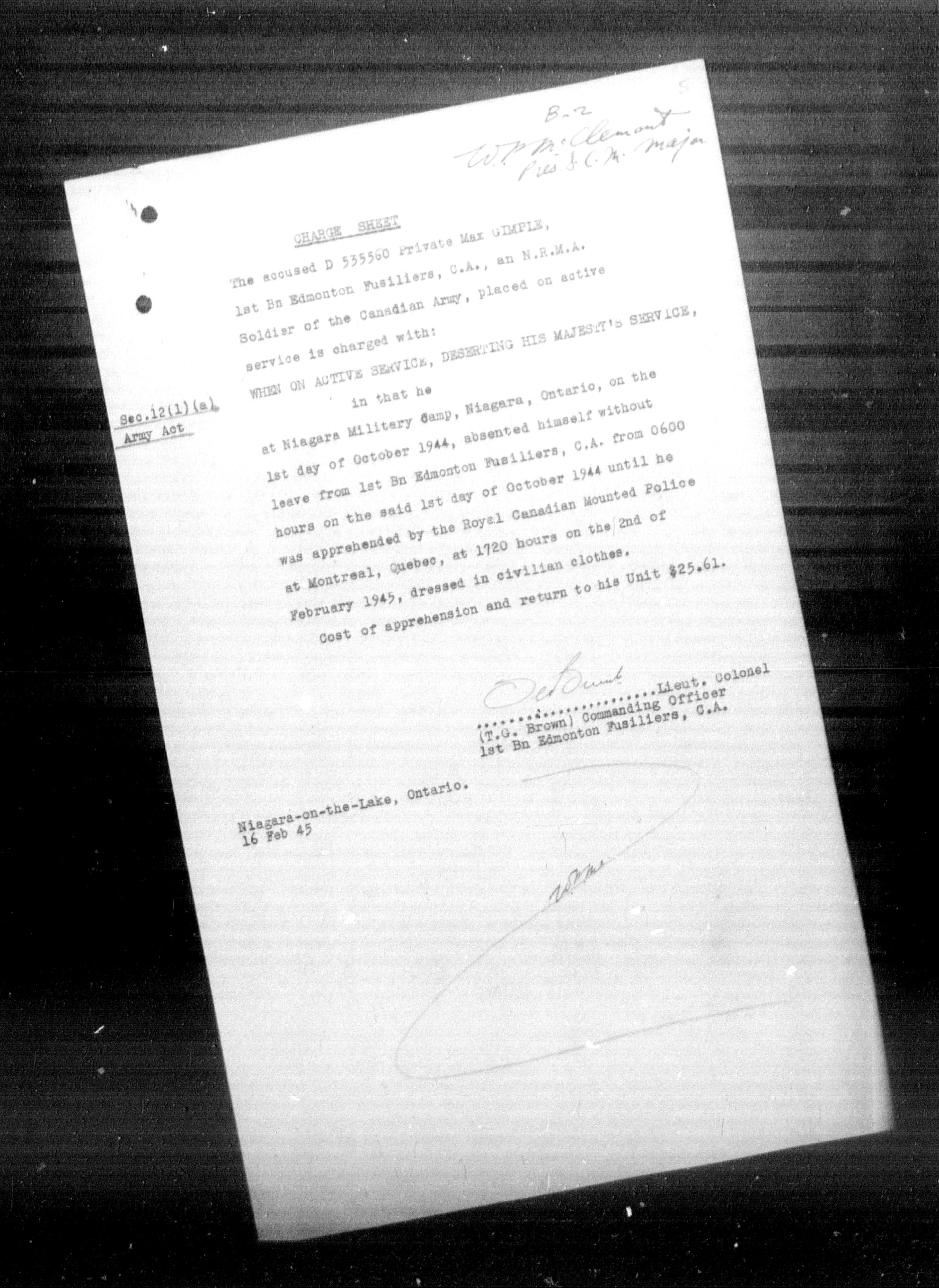 Canadian Army Courts Martial documents (1939-1945) - 15629