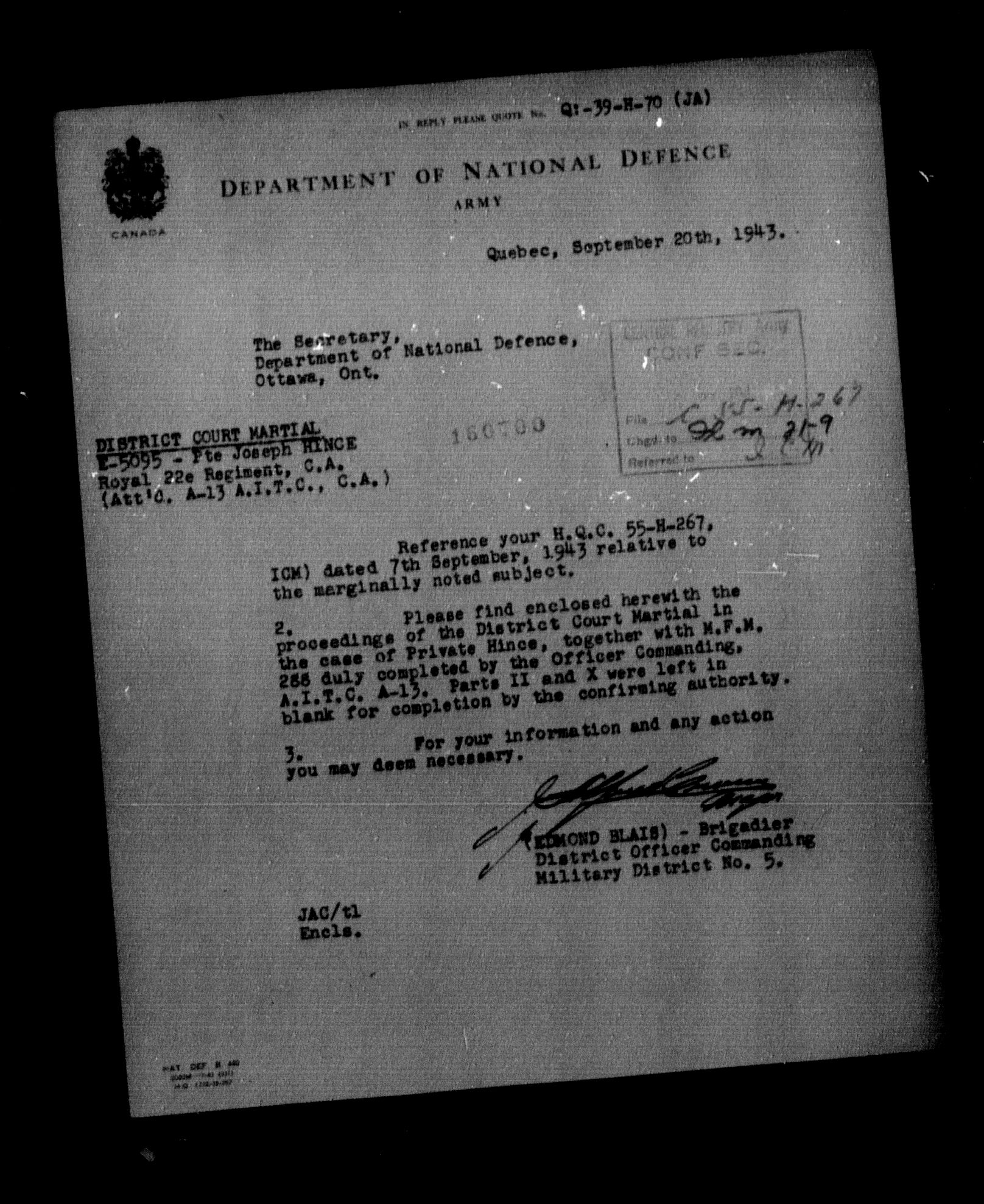 Canadian Army Courts Martial documents (1939-1945) - 15639