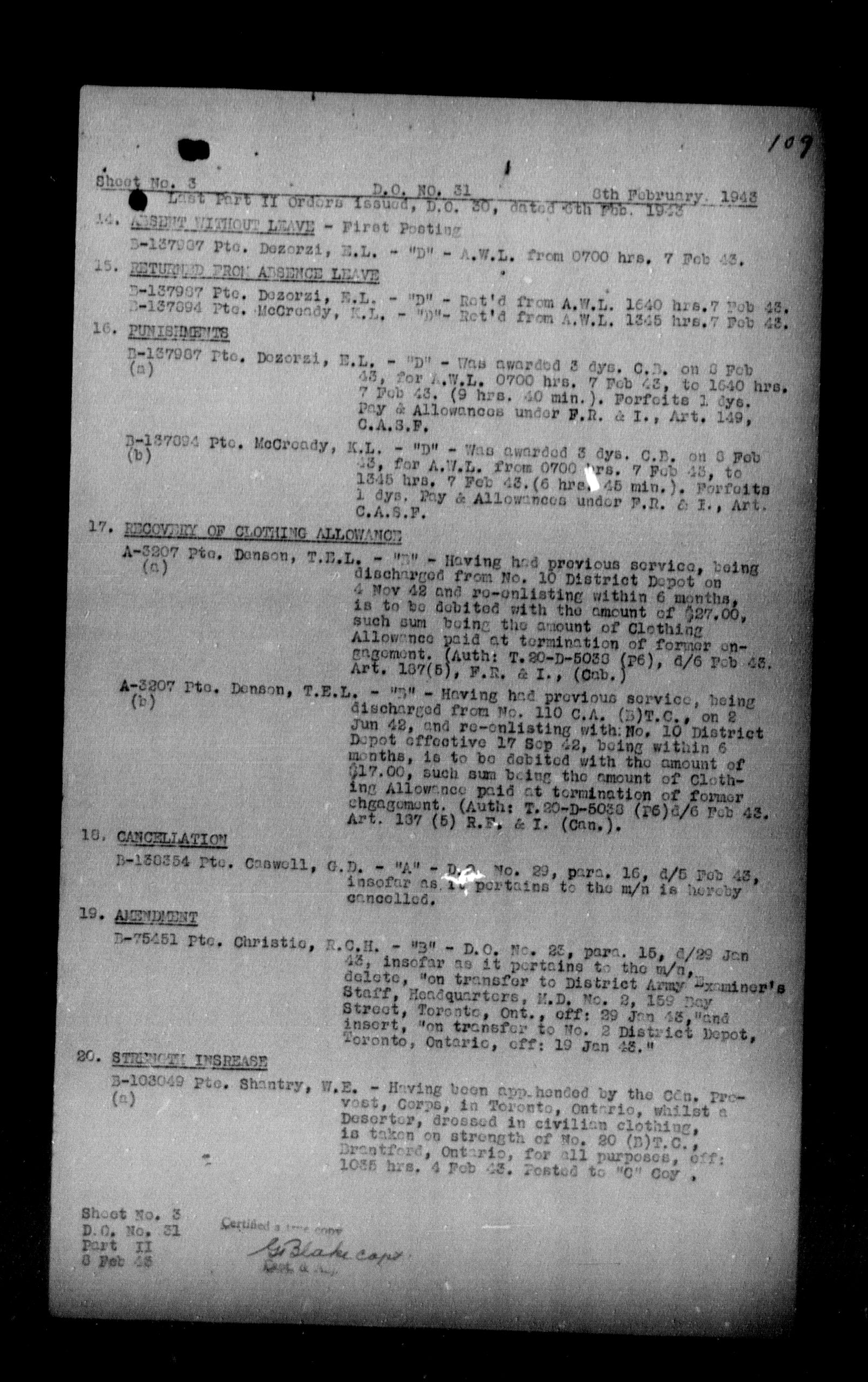 Canadian Army Courts Martial documents (1939-1945) - 15639