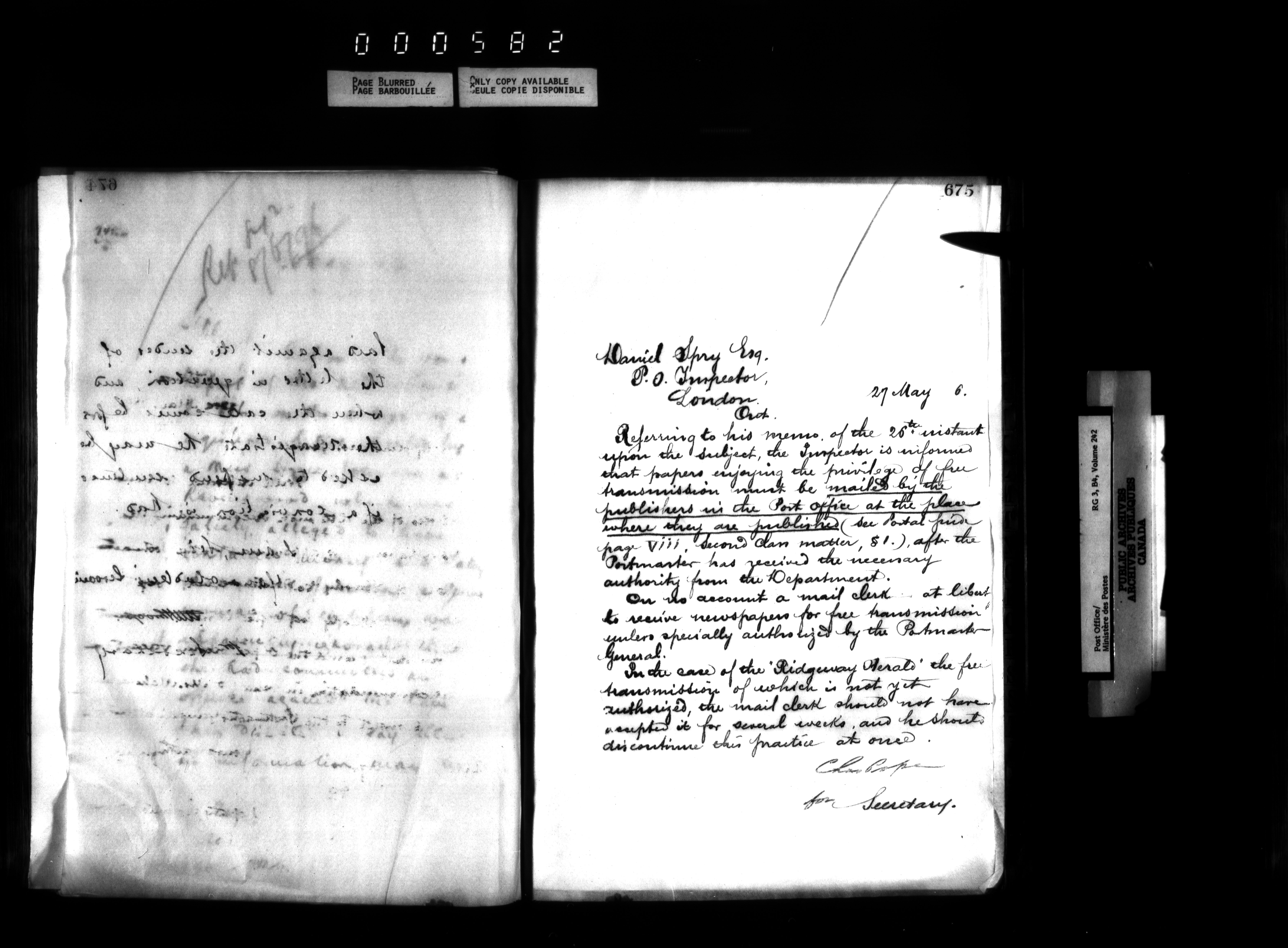 Deputy Postmaster General : correspondence addressed to the Post Office Inspectors, 1851-1902 - 1564