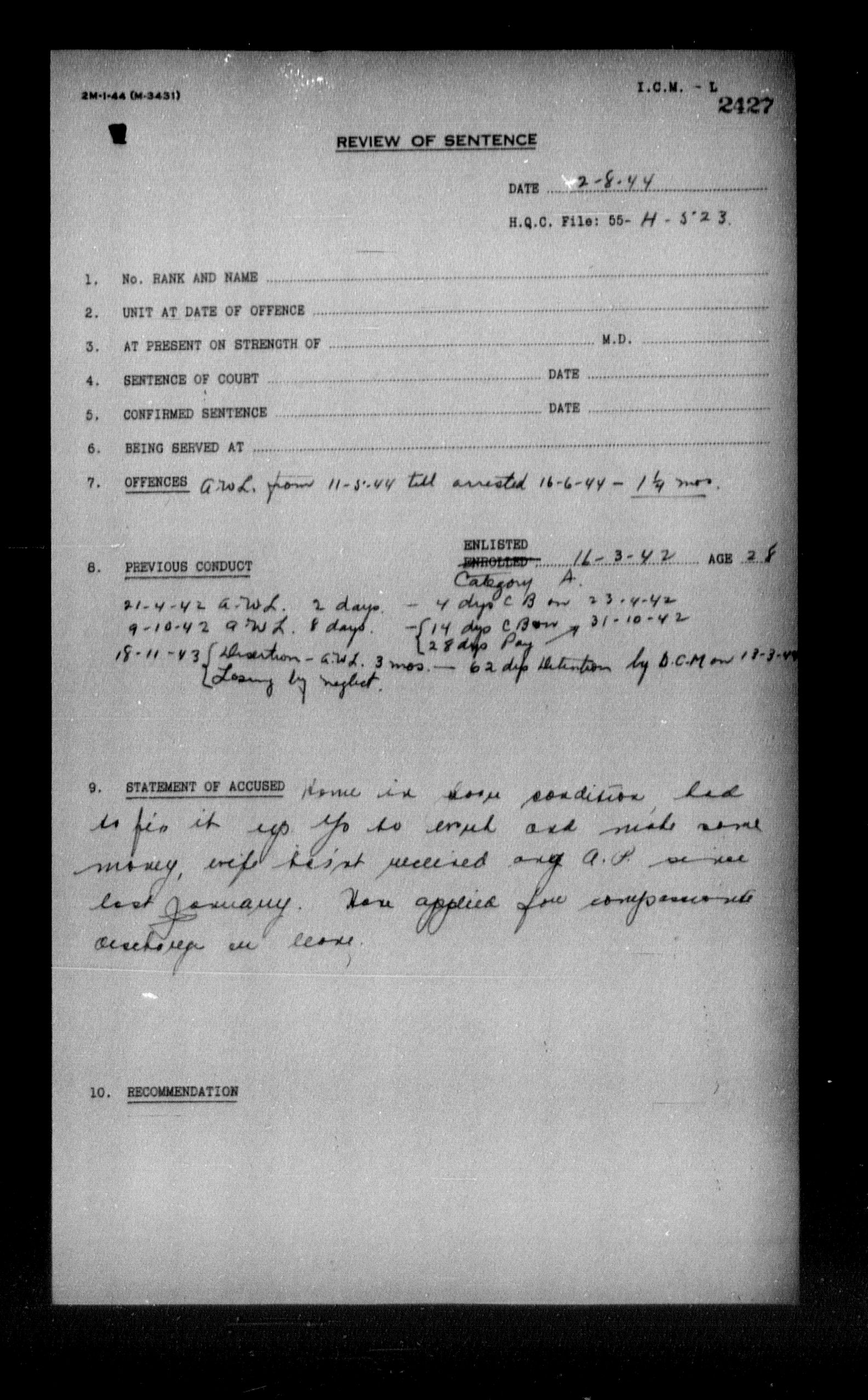 Canadian Army Courts Martial documents (1939-1945) - 15640