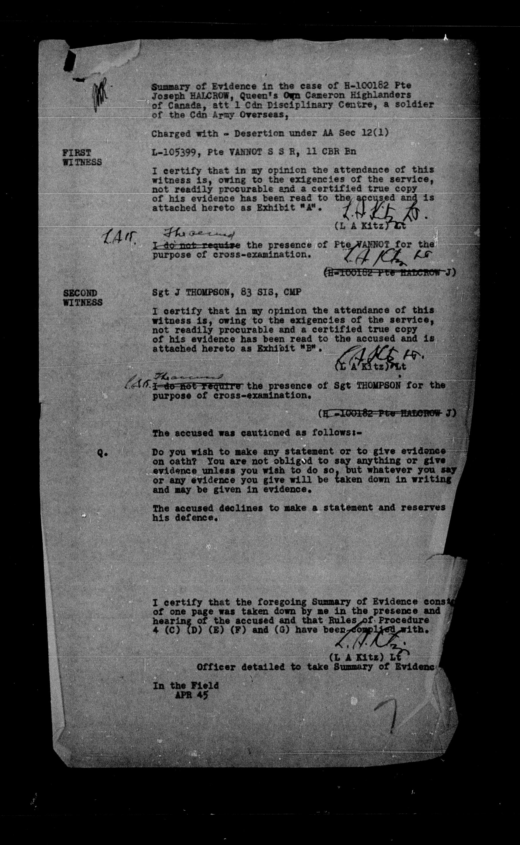 Canadian Army Courts Martial documents (1939-1945) - 15644