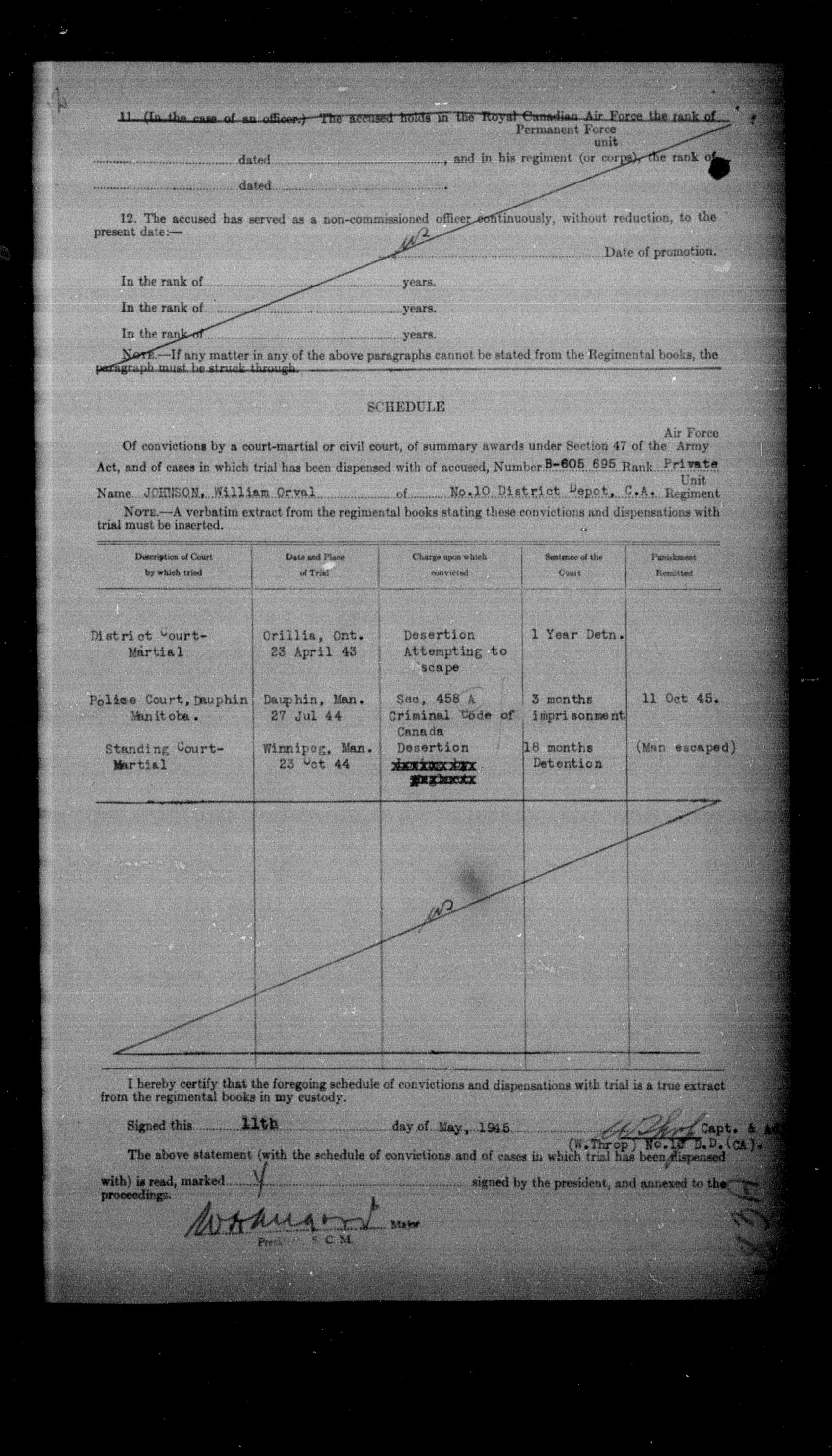 Canadian Army Courts Martial documents (1939-1945) - 15650