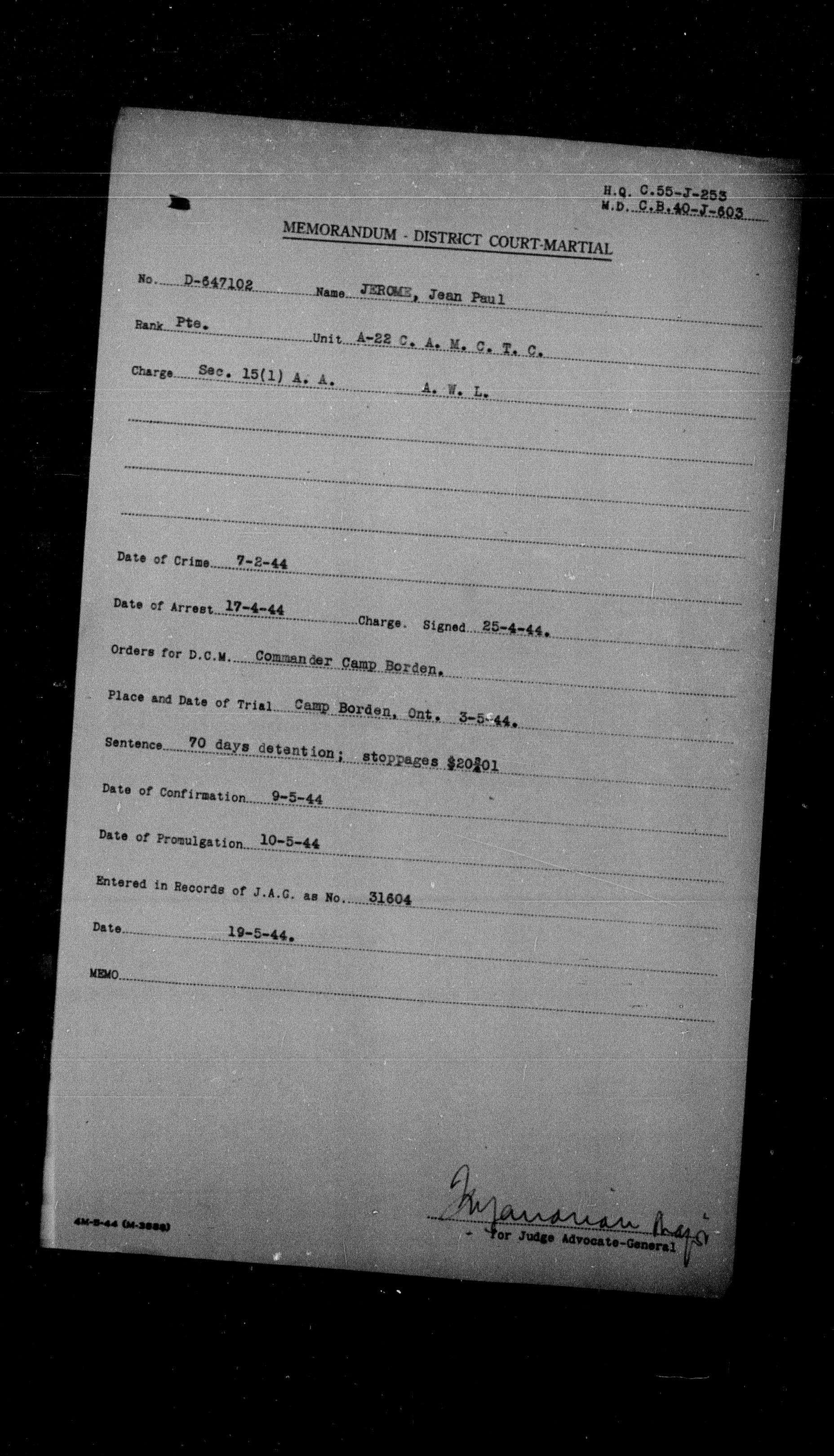 Canadian Army Courts Martial documents (1939-1945) - 15650