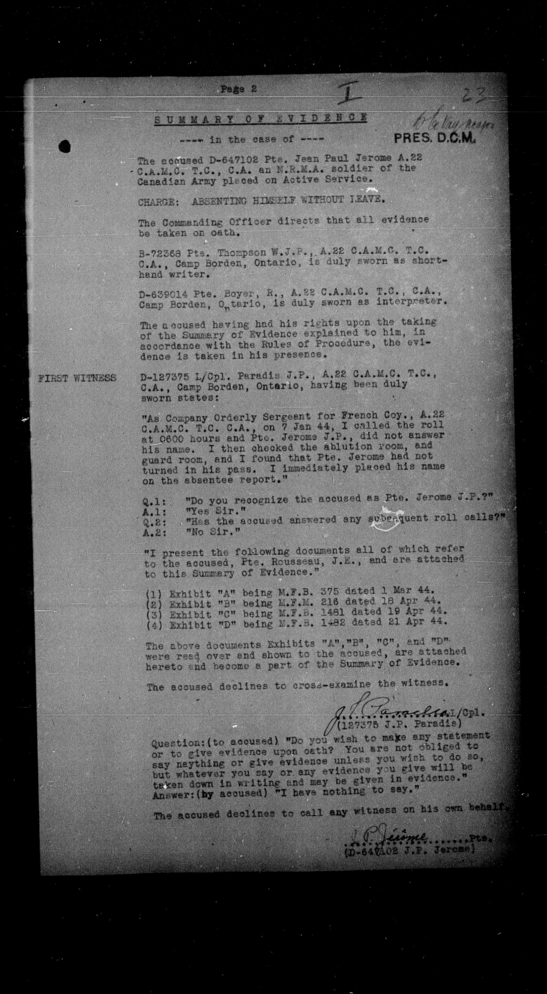 Canadian Army Courts Martial documents (1939-1945) - 15650