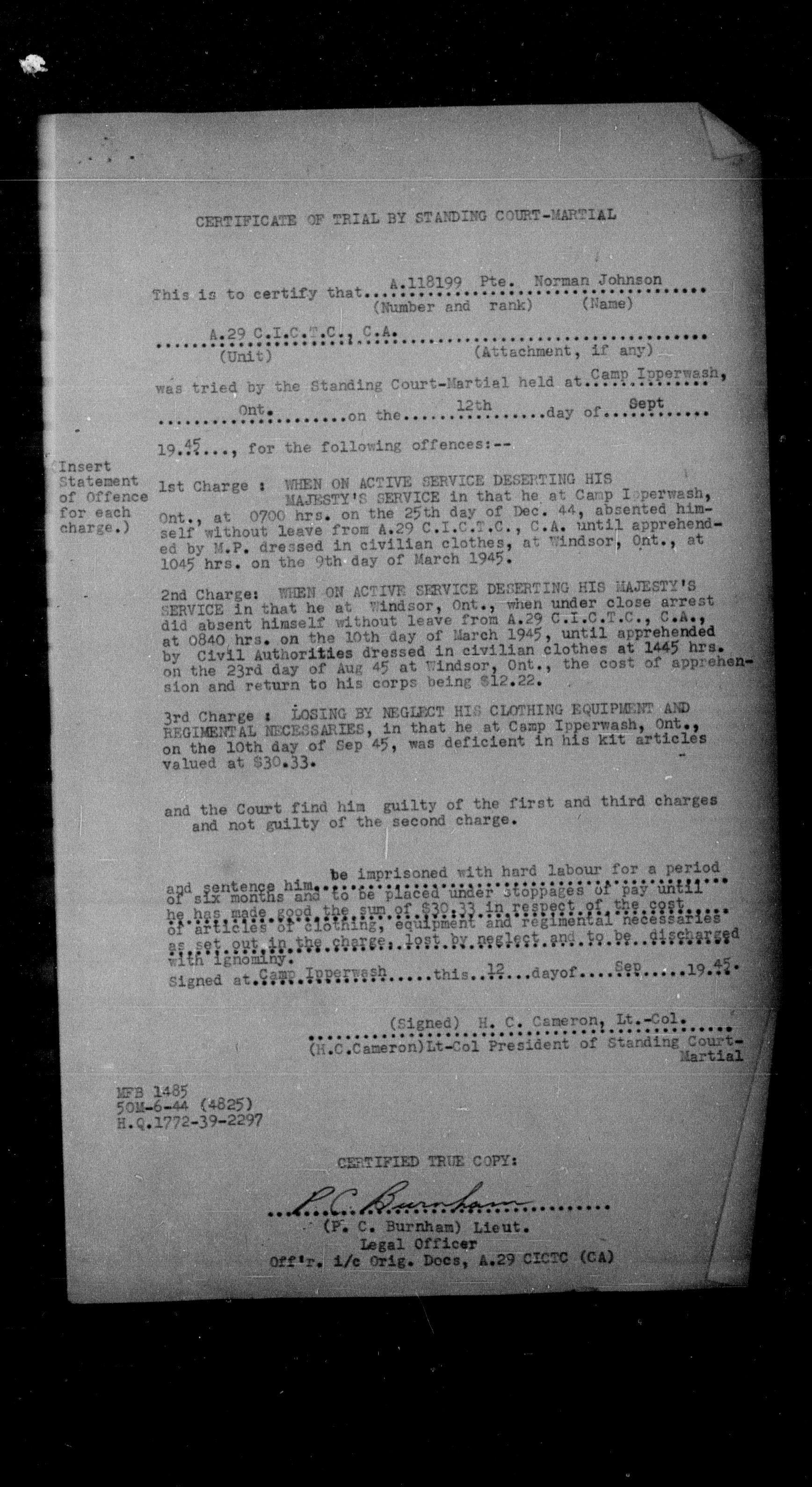 Canadian Army Courts Martial documents (1939-1945) - 15650