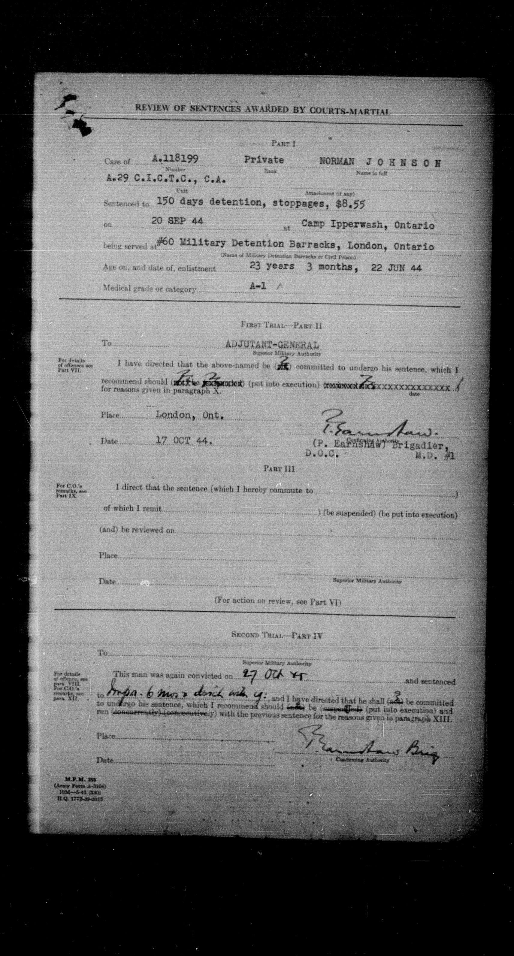 Canadian Army Courts Martial documents (1939-1945) - 15650