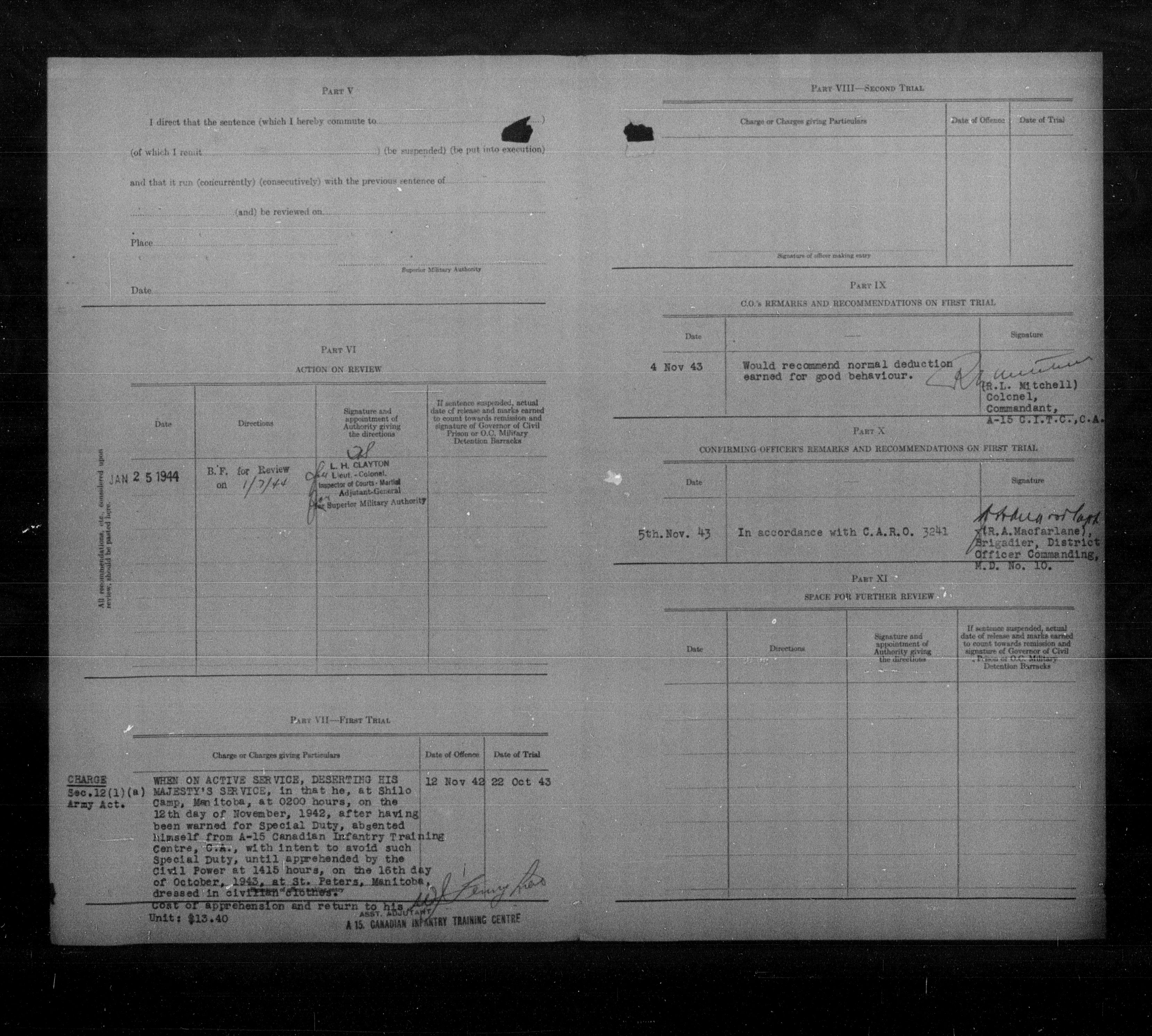 Canadian Army Courts Martial documents (1939-1945) - 15656