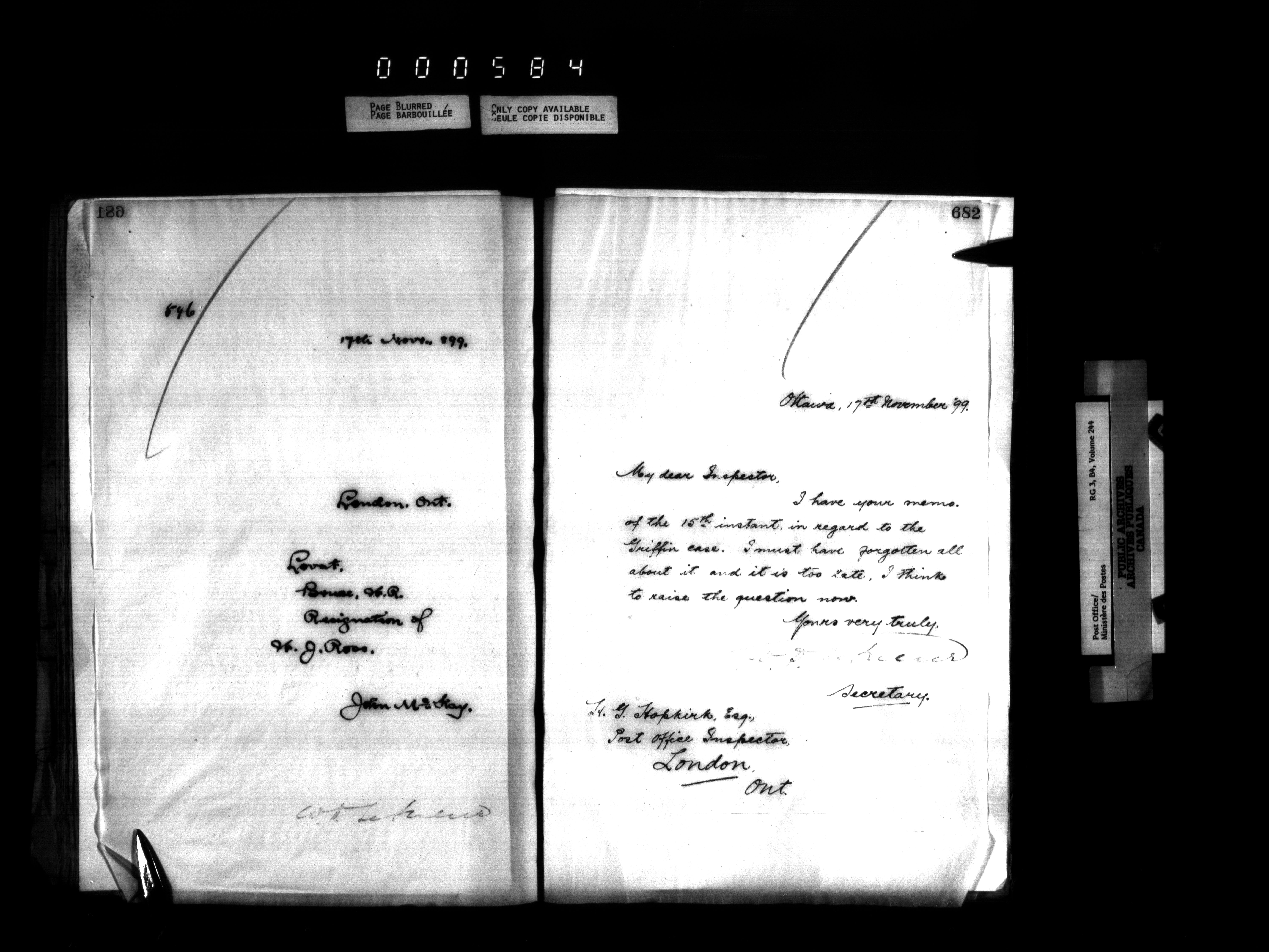 Deputy Postmaster General : correspondence addressed to the Post Office Inspectors, 1851-1902 - 1566