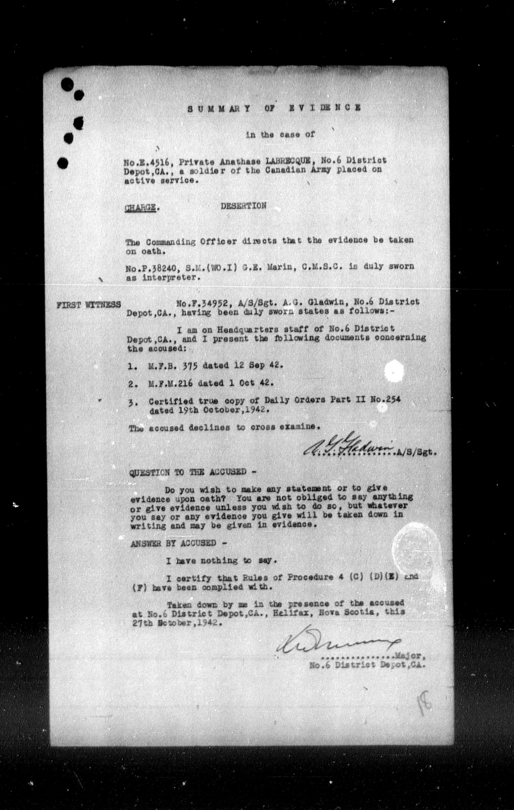 Canadian Army Courts Martial documents (1939-1945) - 15662