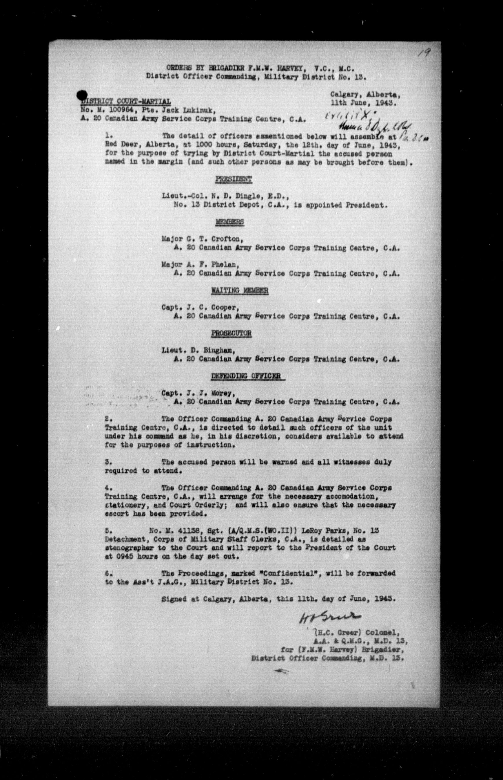Canadian Army Courts Martial documents (1939-1945) - 15664