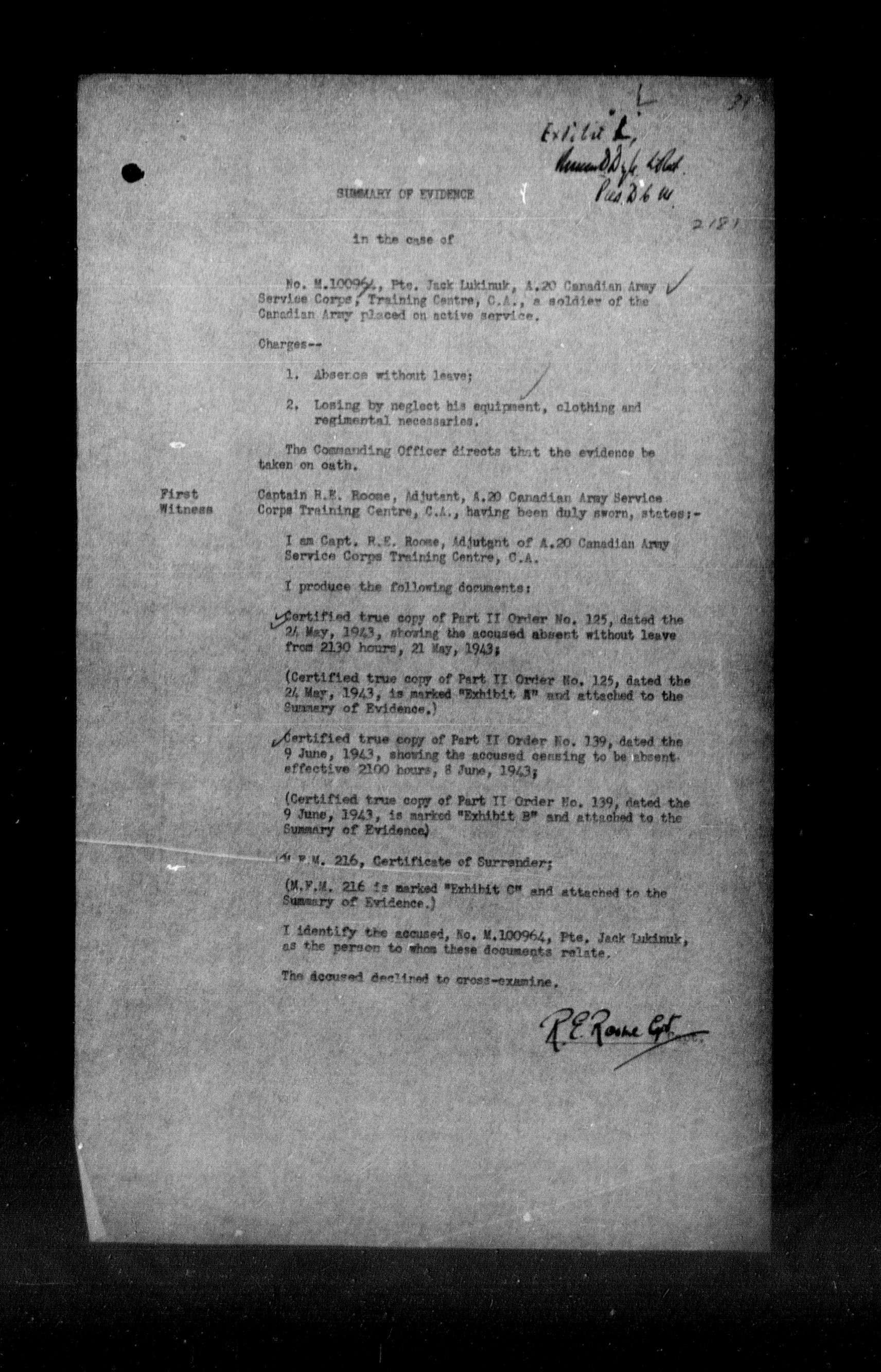 Canadian Army Courts Martial documents (1939-1945) - 15664