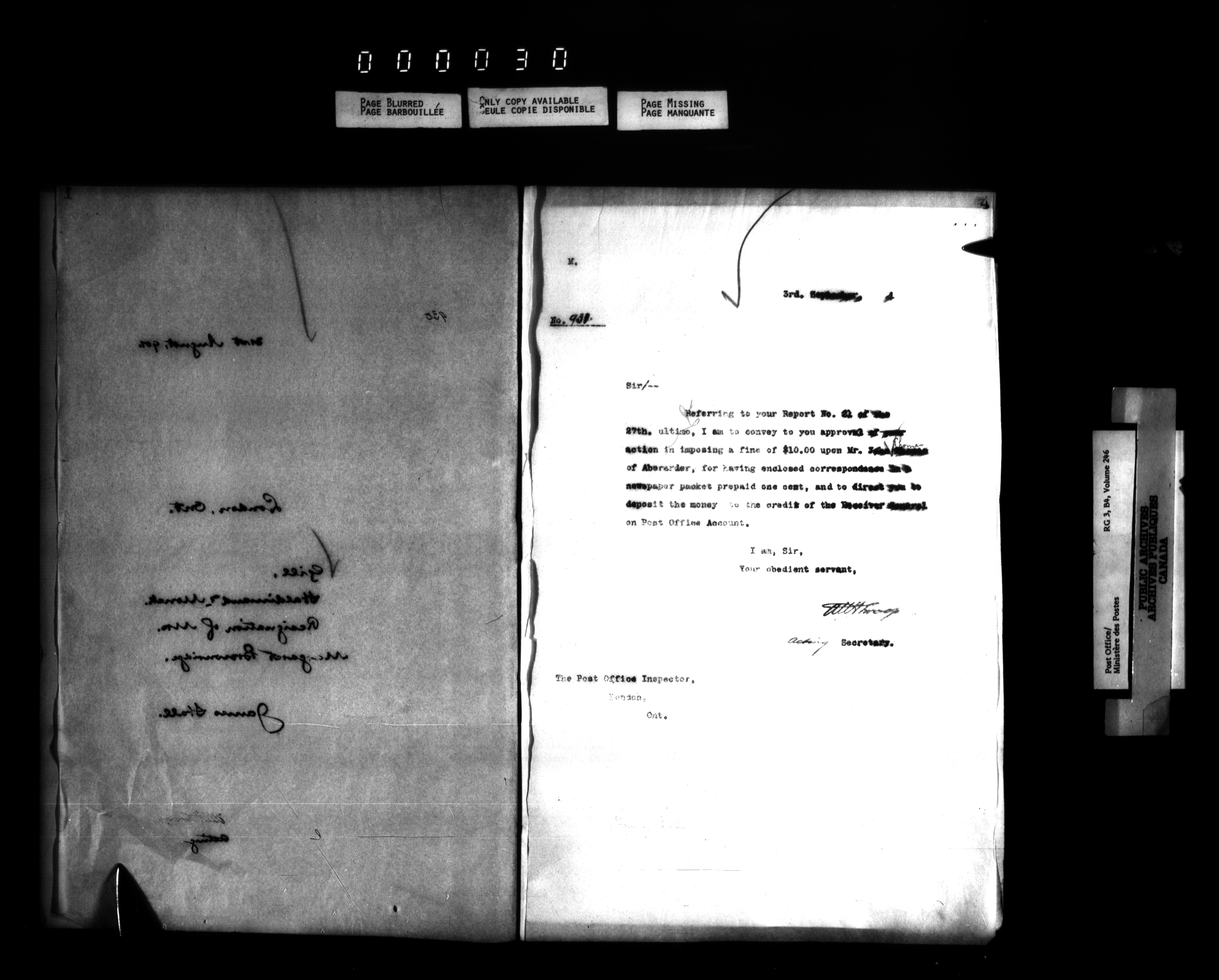 Deputy Postmaster General : correspondence addressed to the Post Office Inspectors, 1851-1902 : T-1568