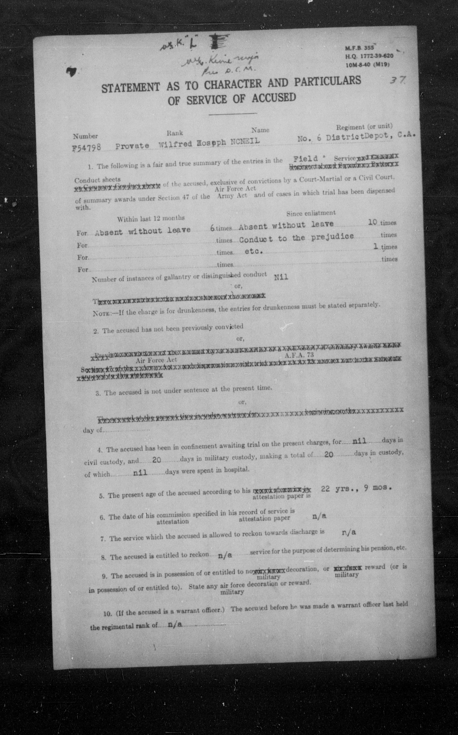 Canadian Army Courts Martial documents (1939-1945) - 15680