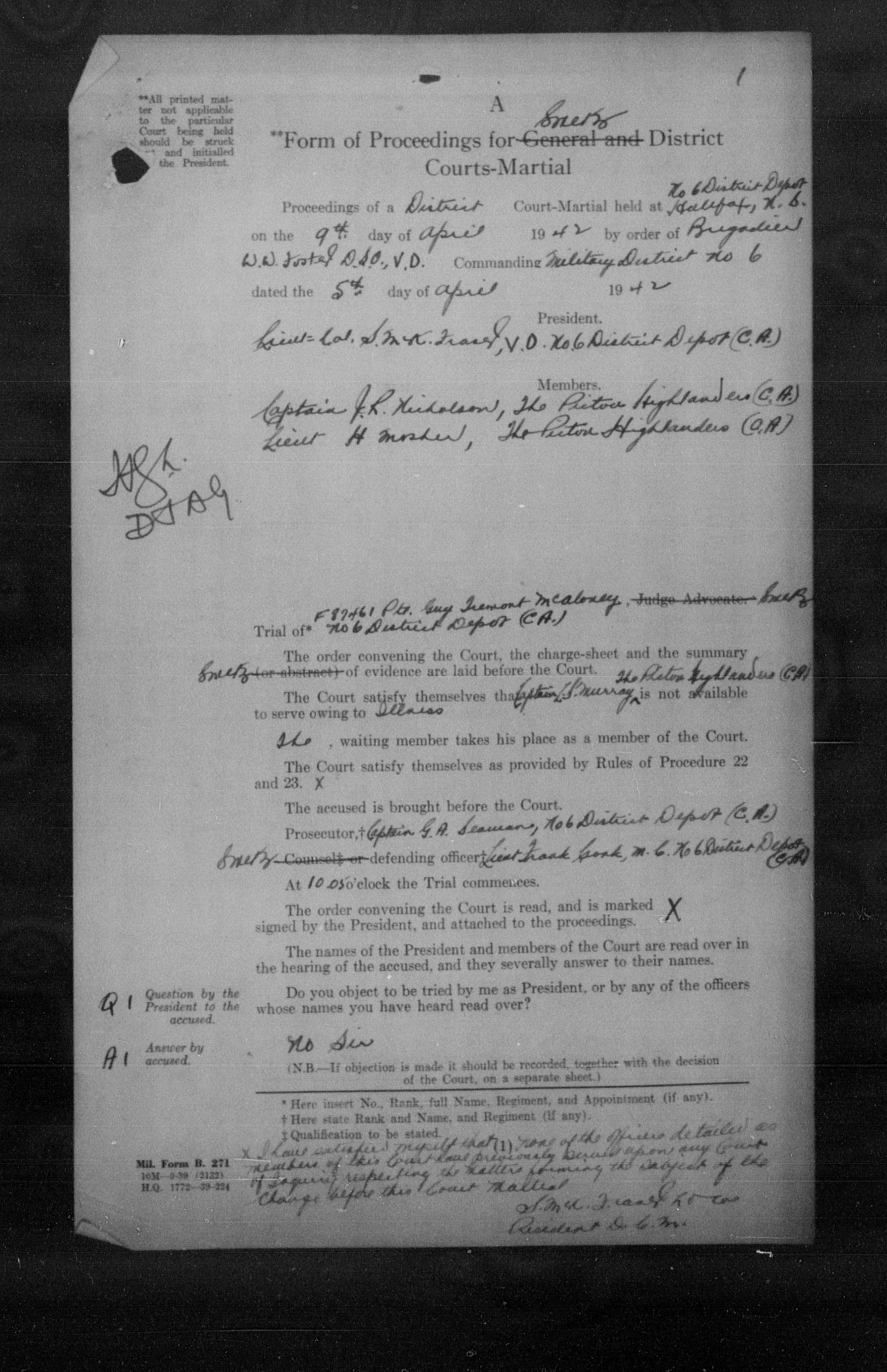 Canadian Army Courts Martial documents (1939-1945) - 15682