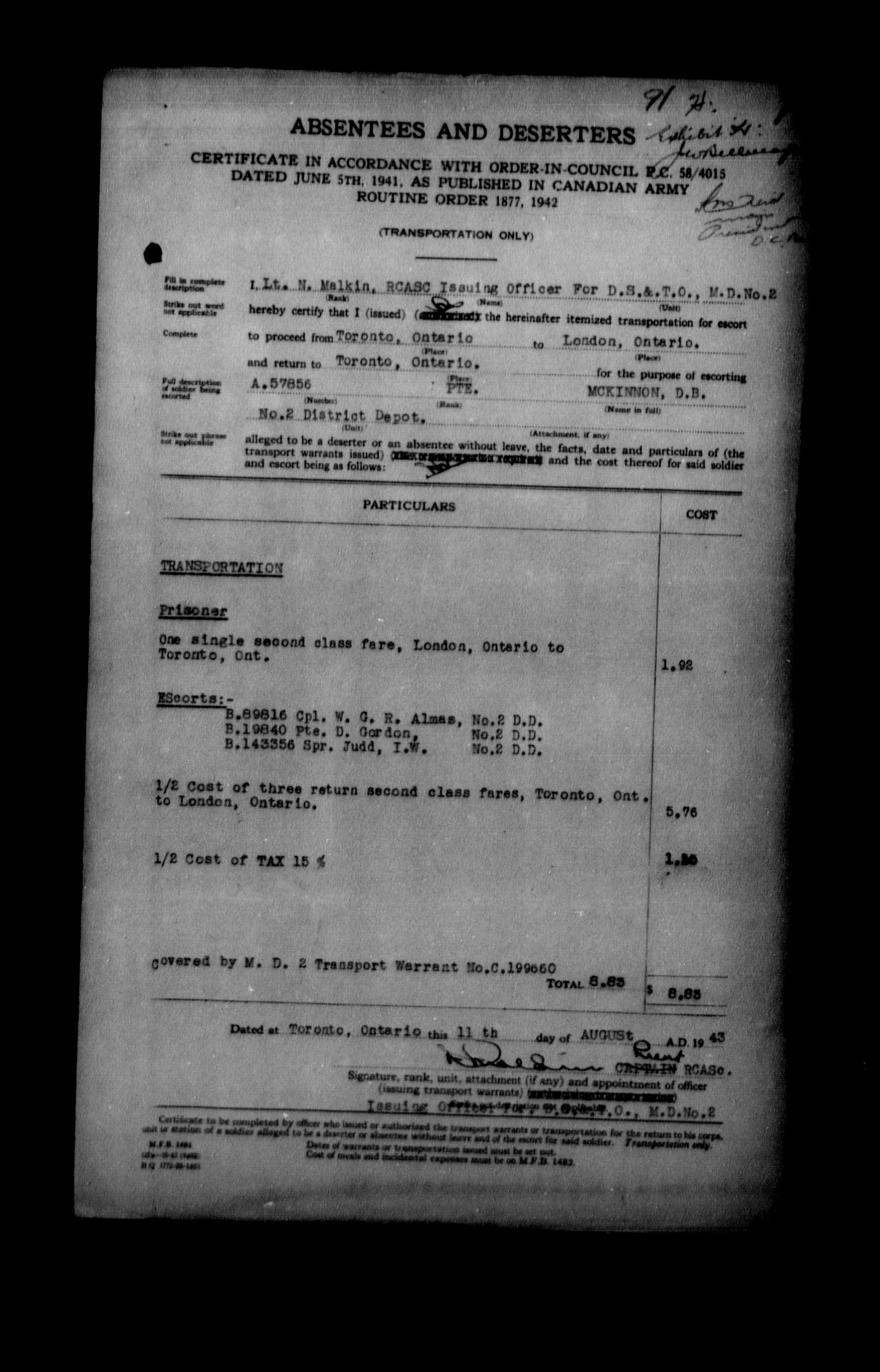 Canadian Army Courts Martial documents (1939-1945) - 15685