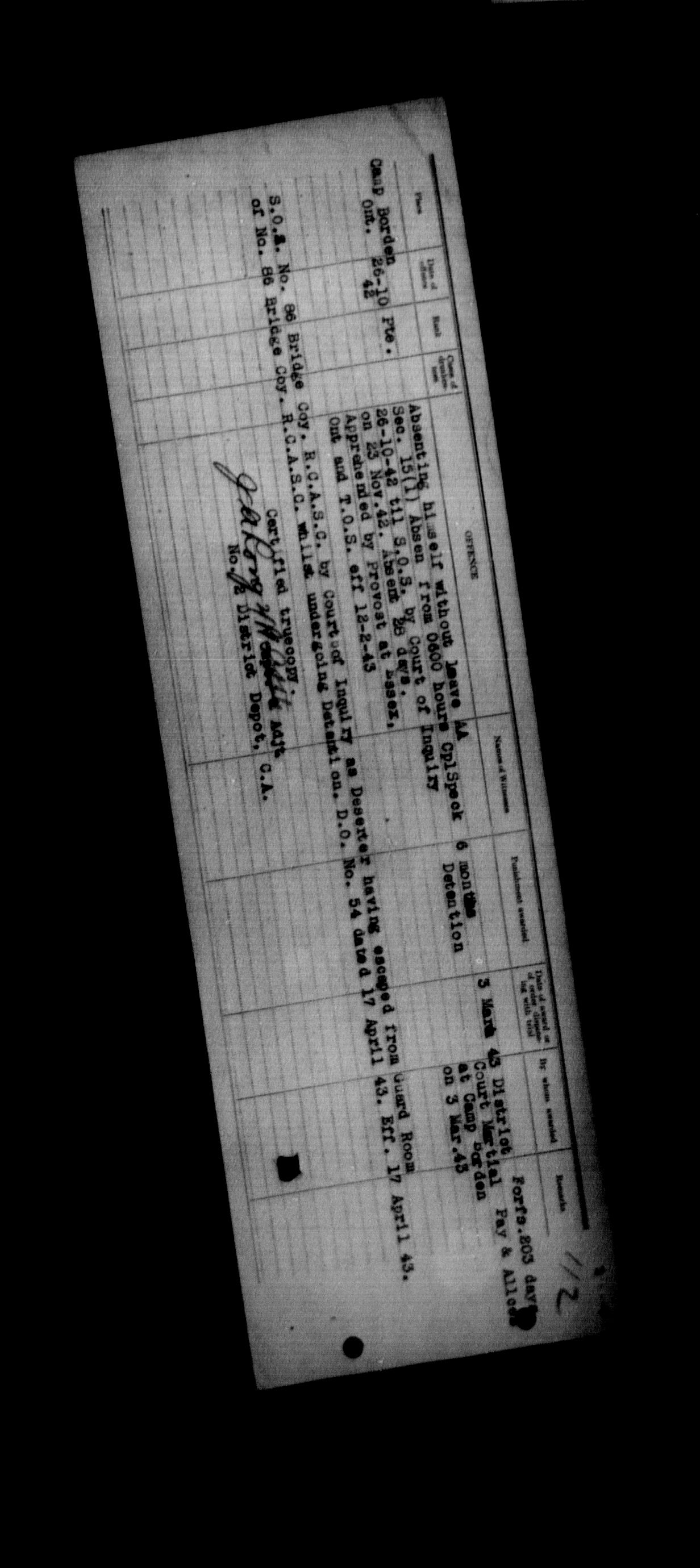Canadian Army Courts Martial documents (1939-1945) - 15685
