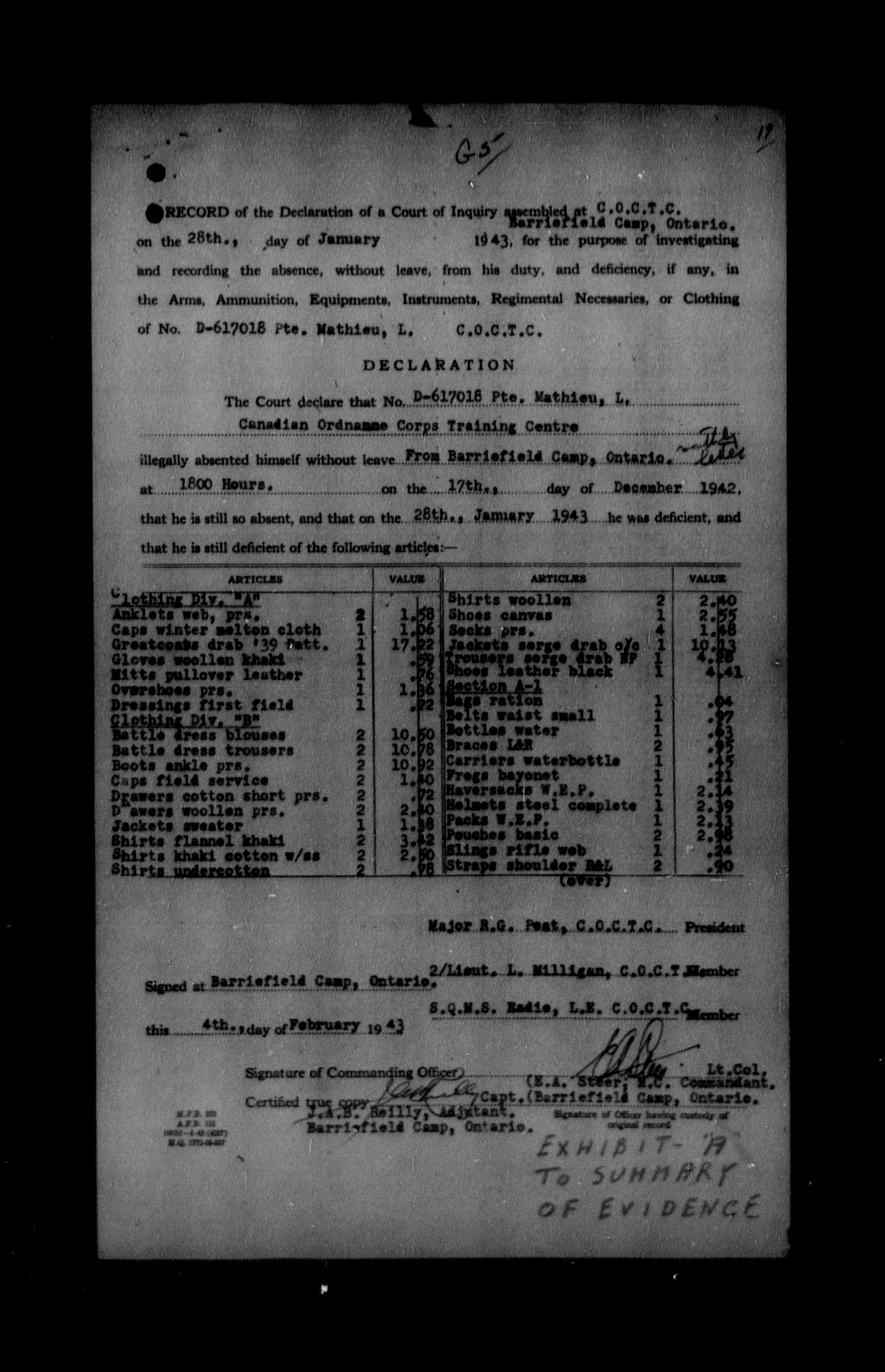 Canadian Army Courts Martial documents (1939-1945) - 15688