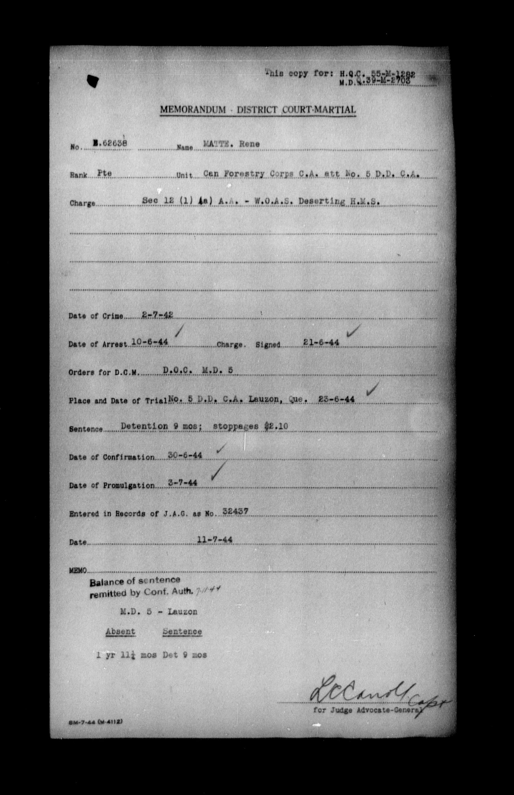 Canadian Army Courts Martial documents (1939-1945) - 15690