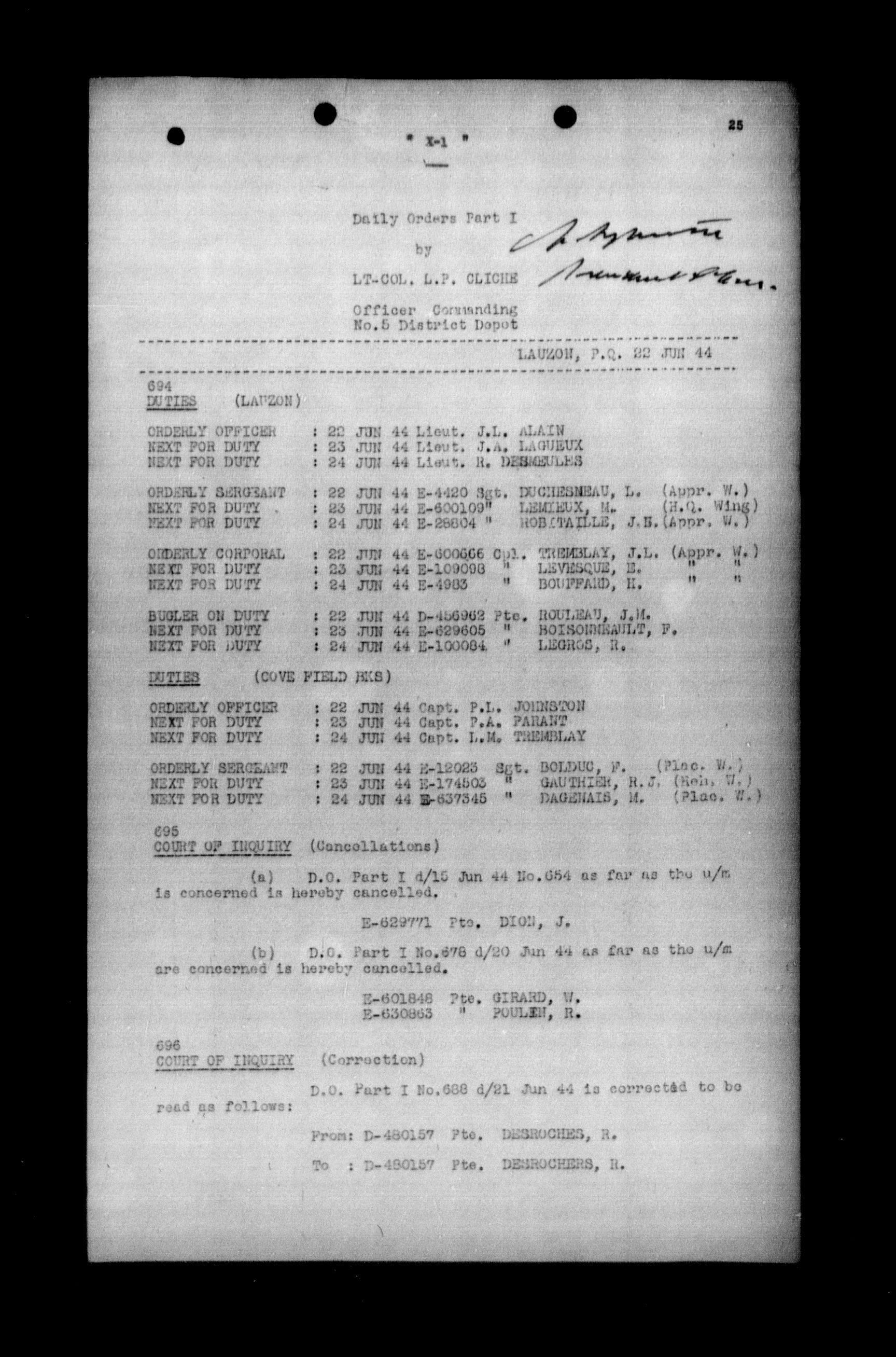 Canadian Army Courts Martial documents (1939-1945) - 15690