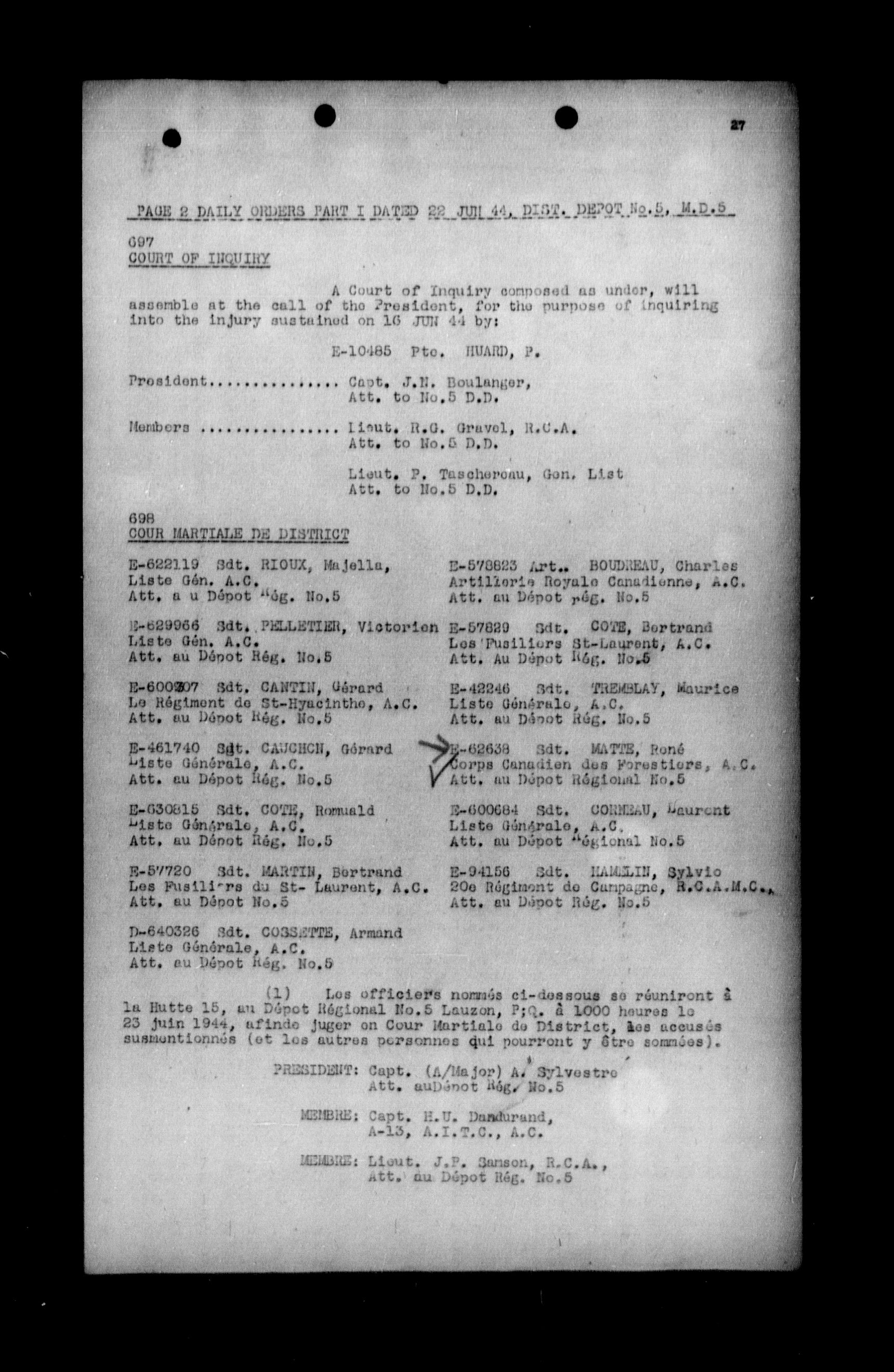 Canadian Army Courts Martial documents (1939-1945) - 15690