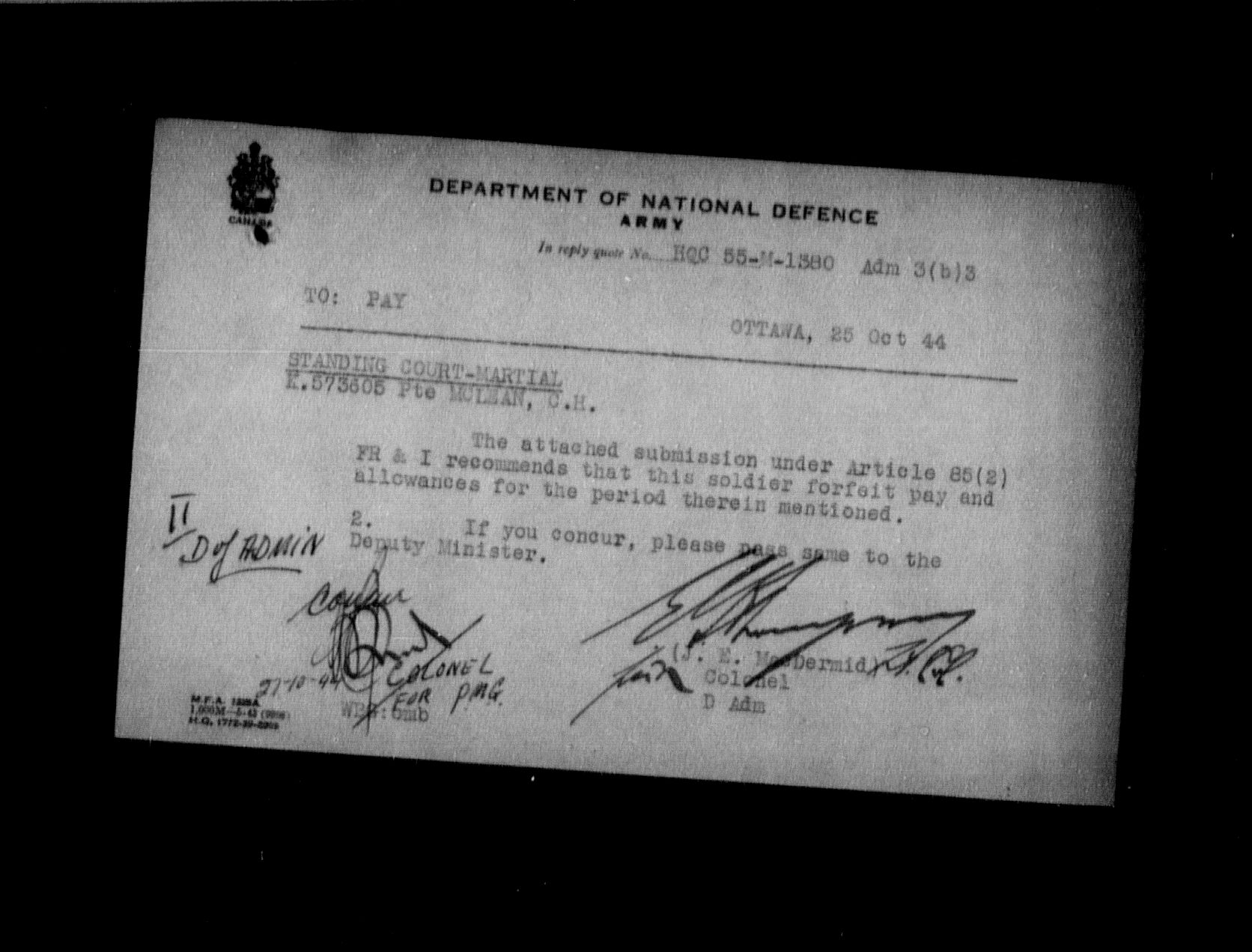 Canadian Army Courts Martial documents (1939-1945) - 15691