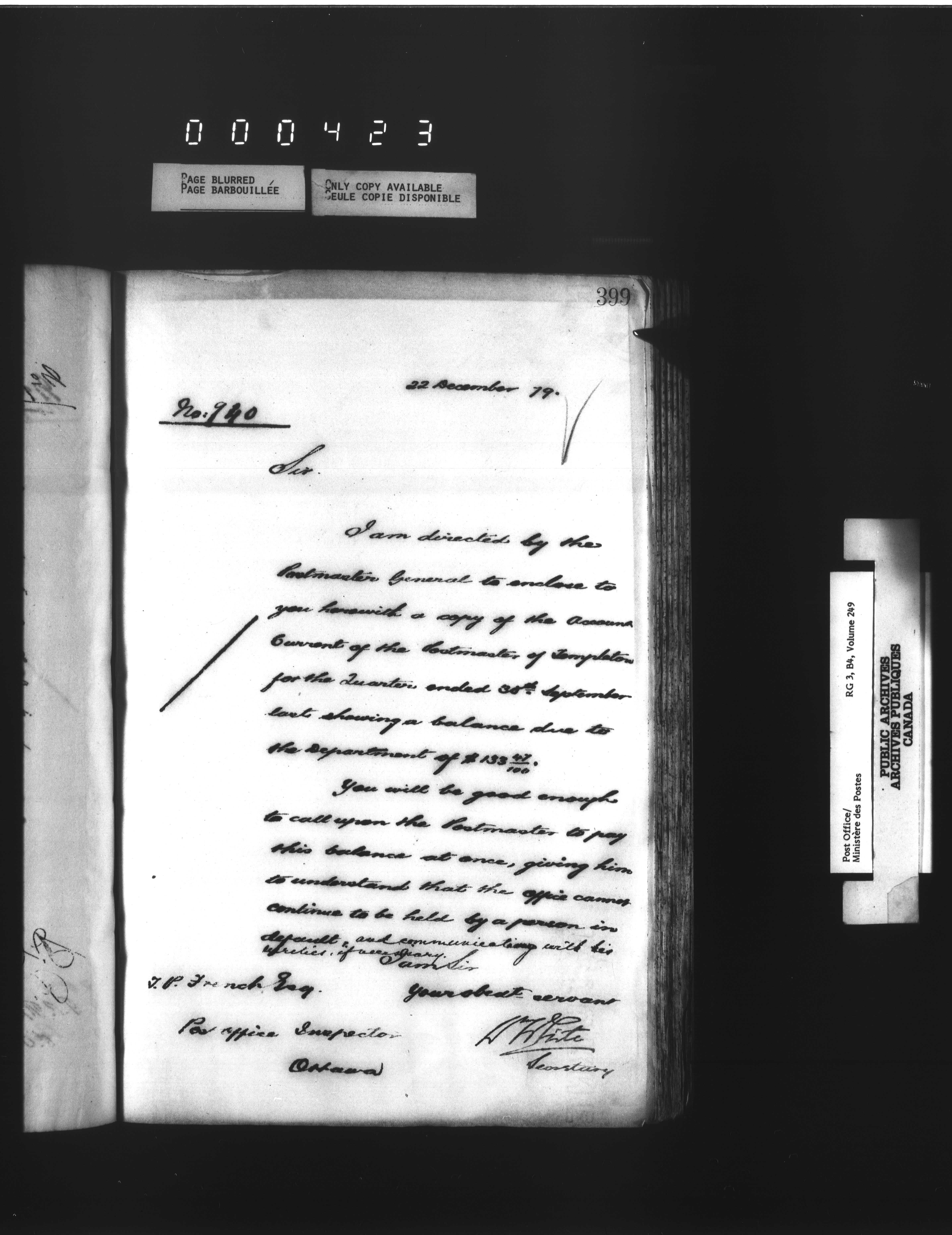 Deputy Postmaster General : correspondence addressed to the Post Office Inspectors, 1851-1902 - 1570