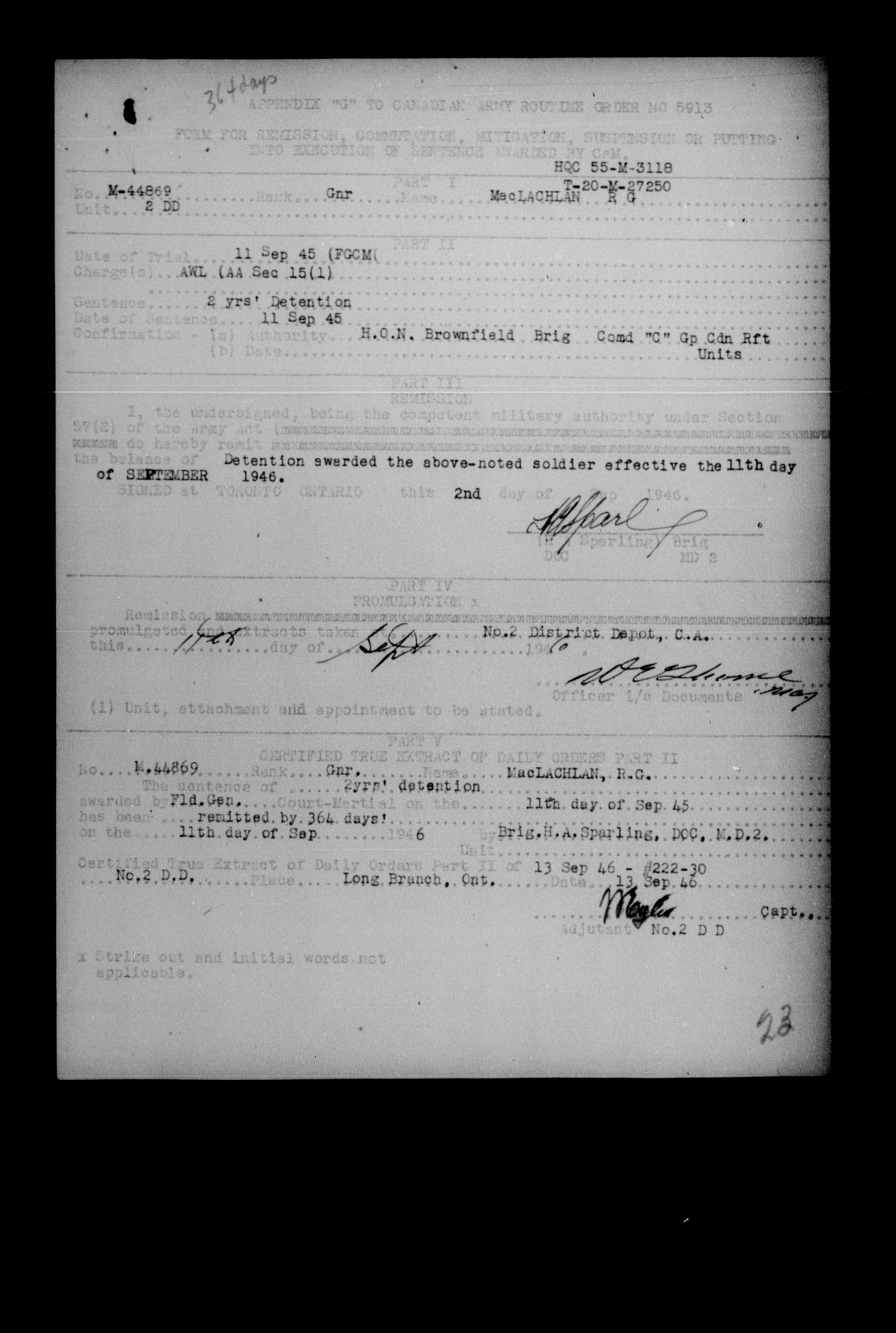 Canadian Army Courts Martial documents (1939-1945) - 15704