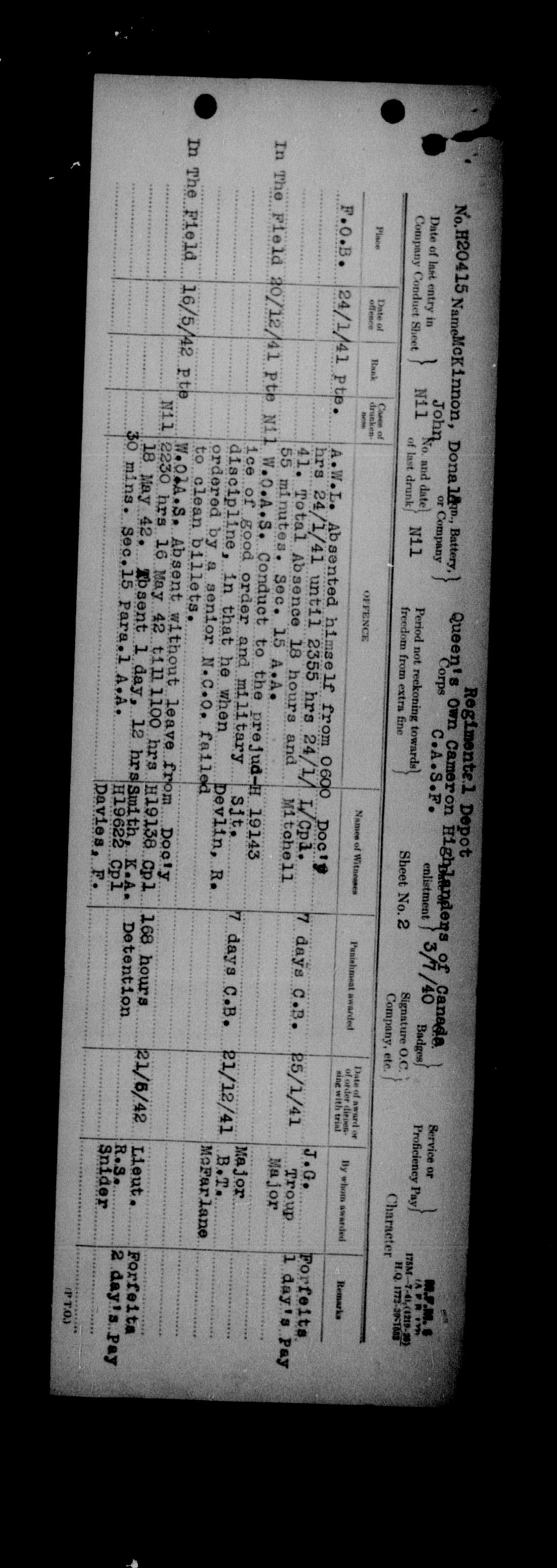 Canadian Army Courts Martial documents (1939-1945) - 15706