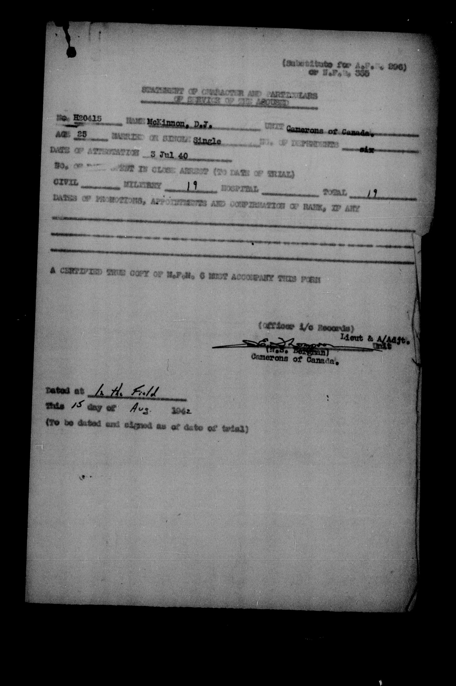 Canadian Army Courts Martial documents (1939-1945) - 15706