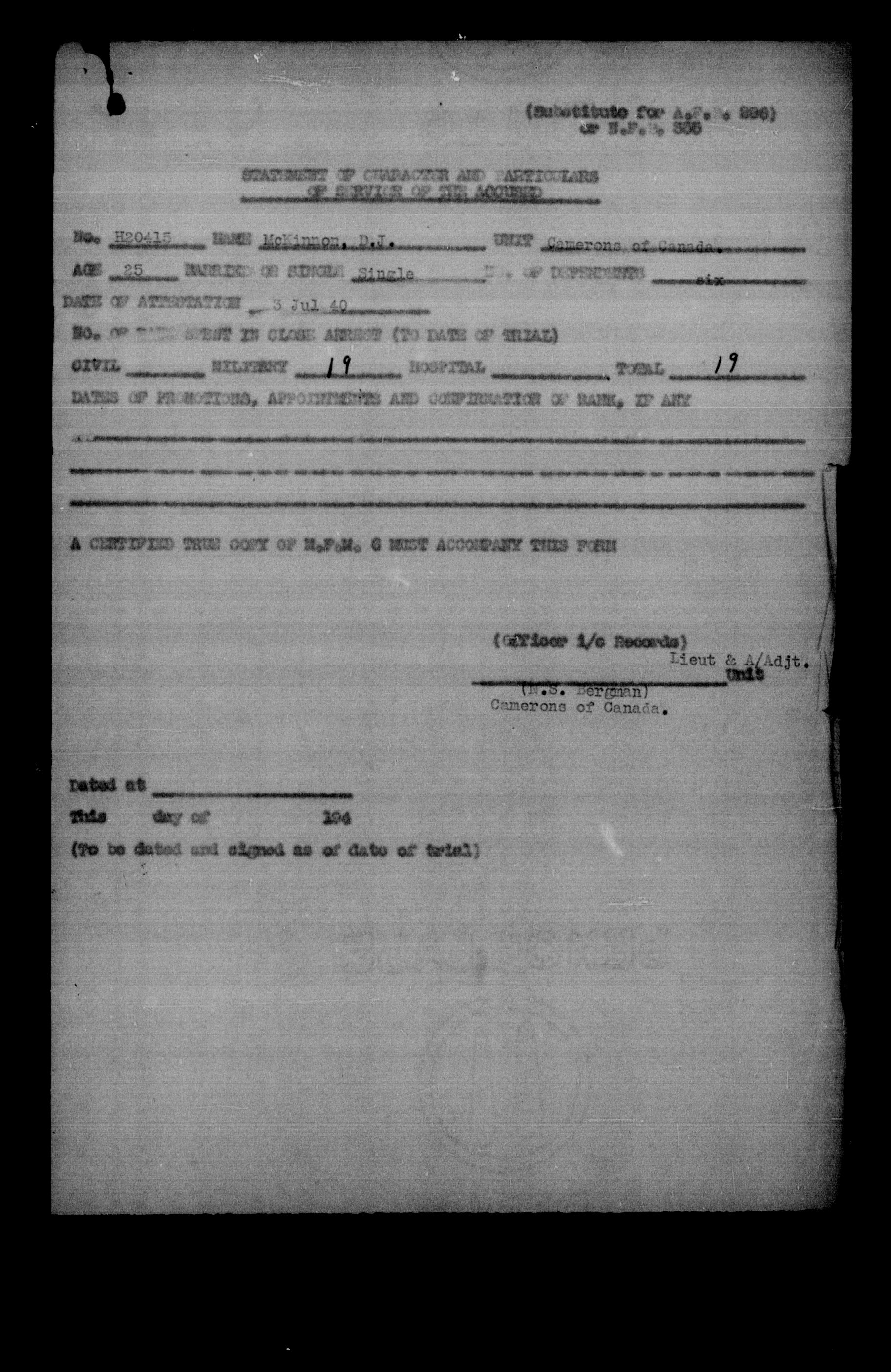 Canadian Army Courts Martial documents (1939-1945) - 15706
